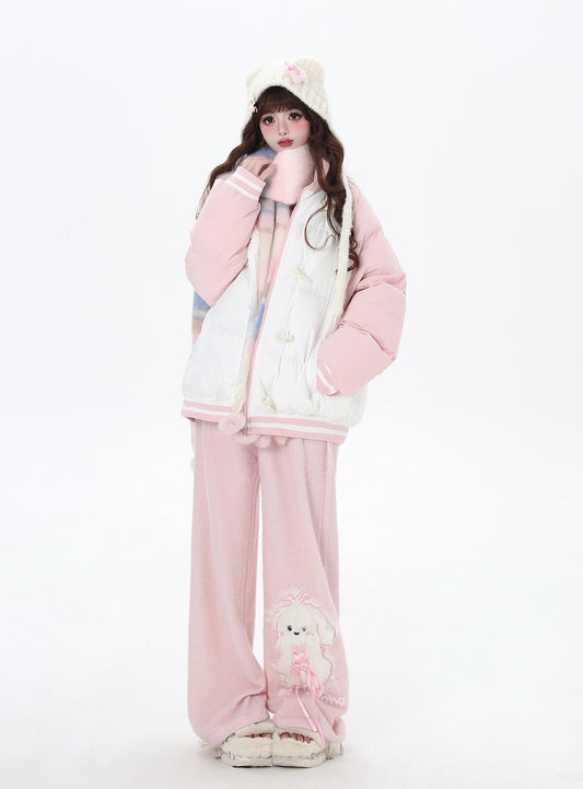 Crazy Girl Triples Bow Fleece Pink White Plush Jacket