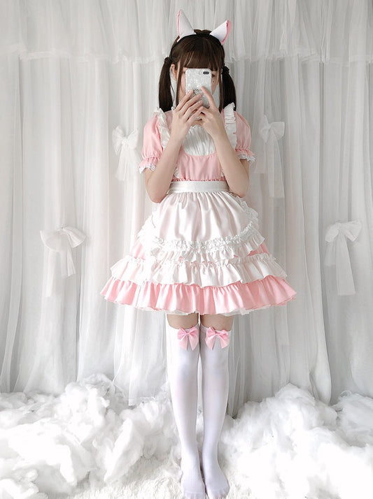 Cute Anime Japanese Maid Neko Pink Dress Cosplay