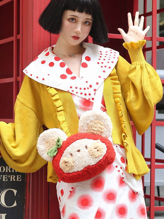 Cute Strawberry Teddy Bear Doll Shoulder Messenger Bag