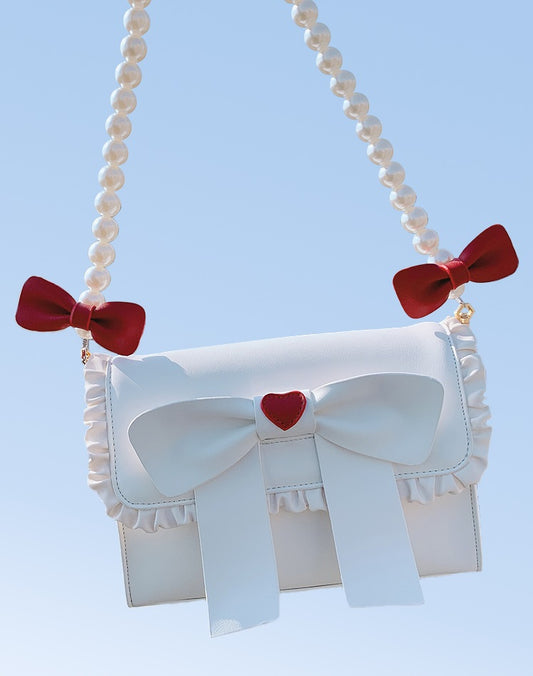 Cute Pearl Chain Bow Bowknot Red Blue White Messenger Bag