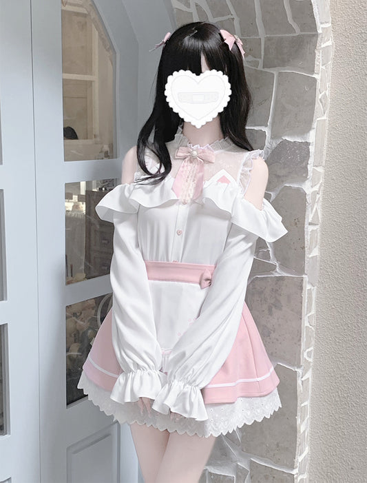 Huayu Pink Cat Maid Top & Skirt Two Piece Set