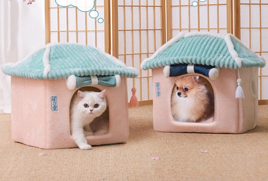 Japanese Sakura Snow Wind Four Seasons Villa Cats Dogs Pets Beds Nests