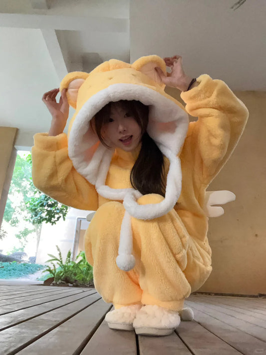 Kero Chan Yellow Hoodie Top & Pants Anime Pajamas Two Piece