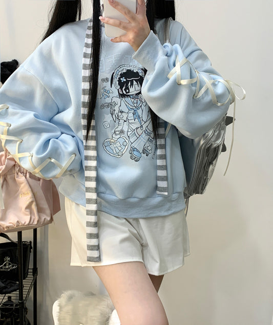 Kitten Bullet Aqua Heaven White Blue Bow Lace Sweater Sweatshirt