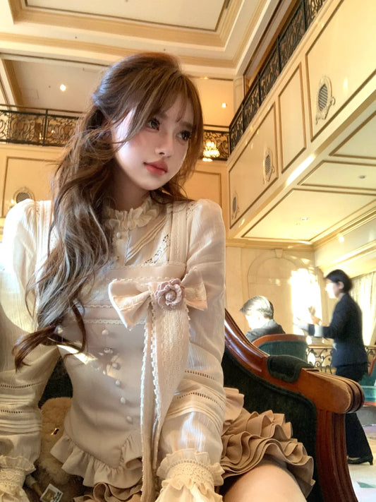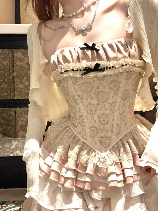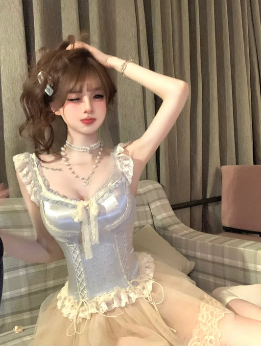 Lazy Girl Confession Balletcore Cream Top & Skirt Two Piece Set