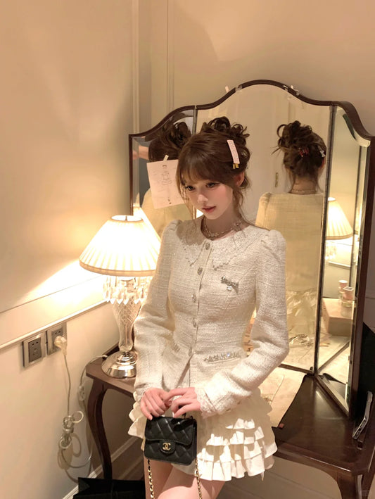 Lazy Girl Audrey Cream Tweed Jacket & Skirt Two Piece Set