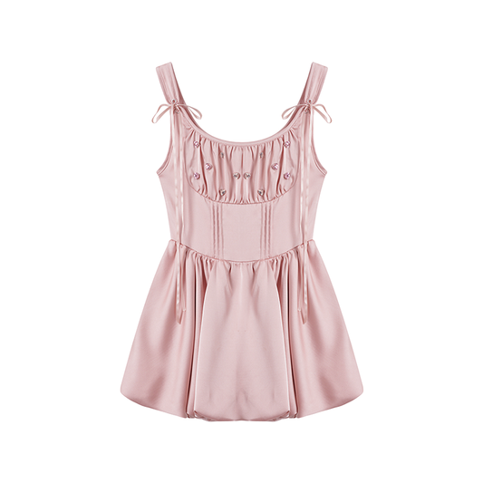 Lazy Girl Antique Doll Pearl Pink Strap Dress