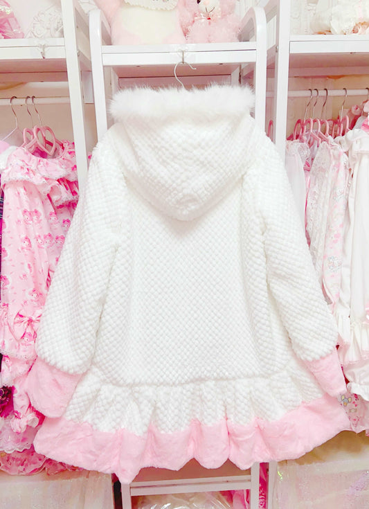 Candy Fairy Winter Velvet Cotton White Pink Thick Hooded Fur Jacket