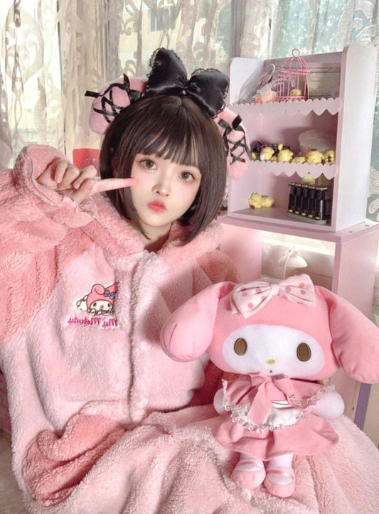 Cartoon Melody Hooded Cute Nightgown Pink Long Bathrobe Pants Pajamas