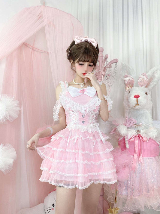 Candy Fairy Supreme Pink Princess Cake Ruffled Layered Lace Two Piece Set