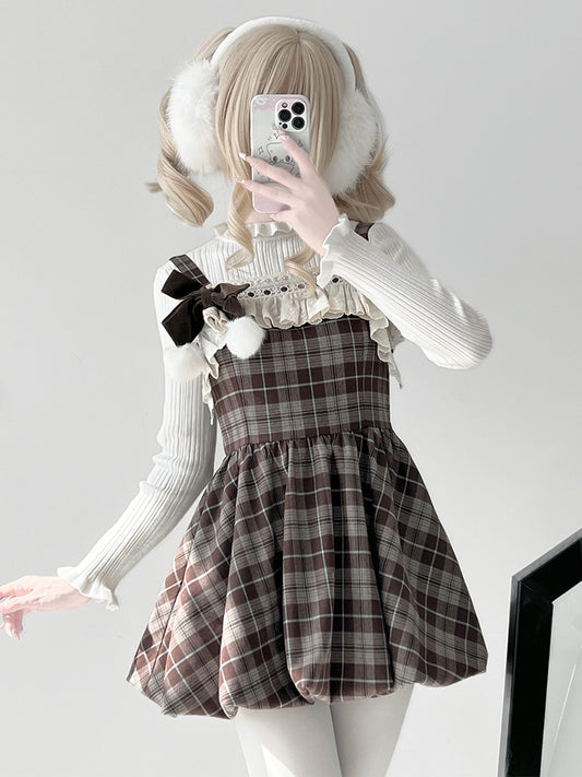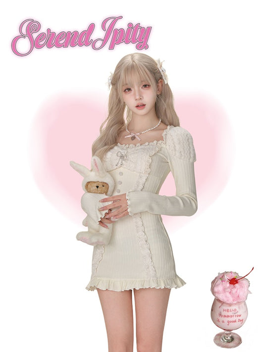 Dormir Doll Cheese Bow Pink Cream Green Puff Sleeve Dress