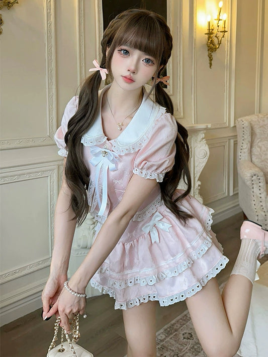 Flower Note Hanfu Lolita Pink Dress & Jacket Two Piece Set