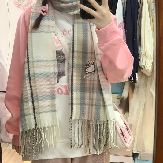 Sweet Plaid Cute Soft Pastel Shawl Scarf Scarves
