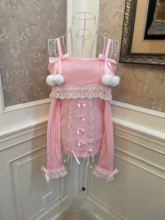Lolita Sweet Girl Coquette Lace Pastel Pink Bow White Socks
