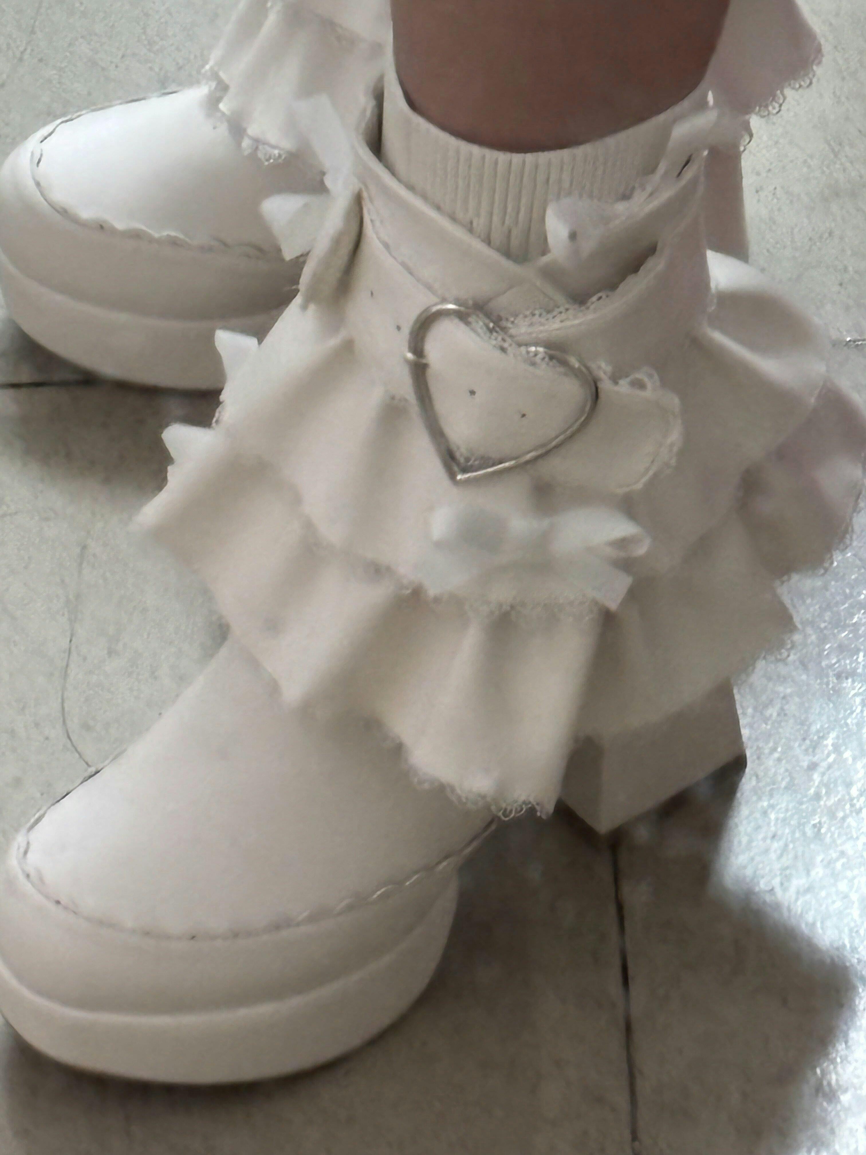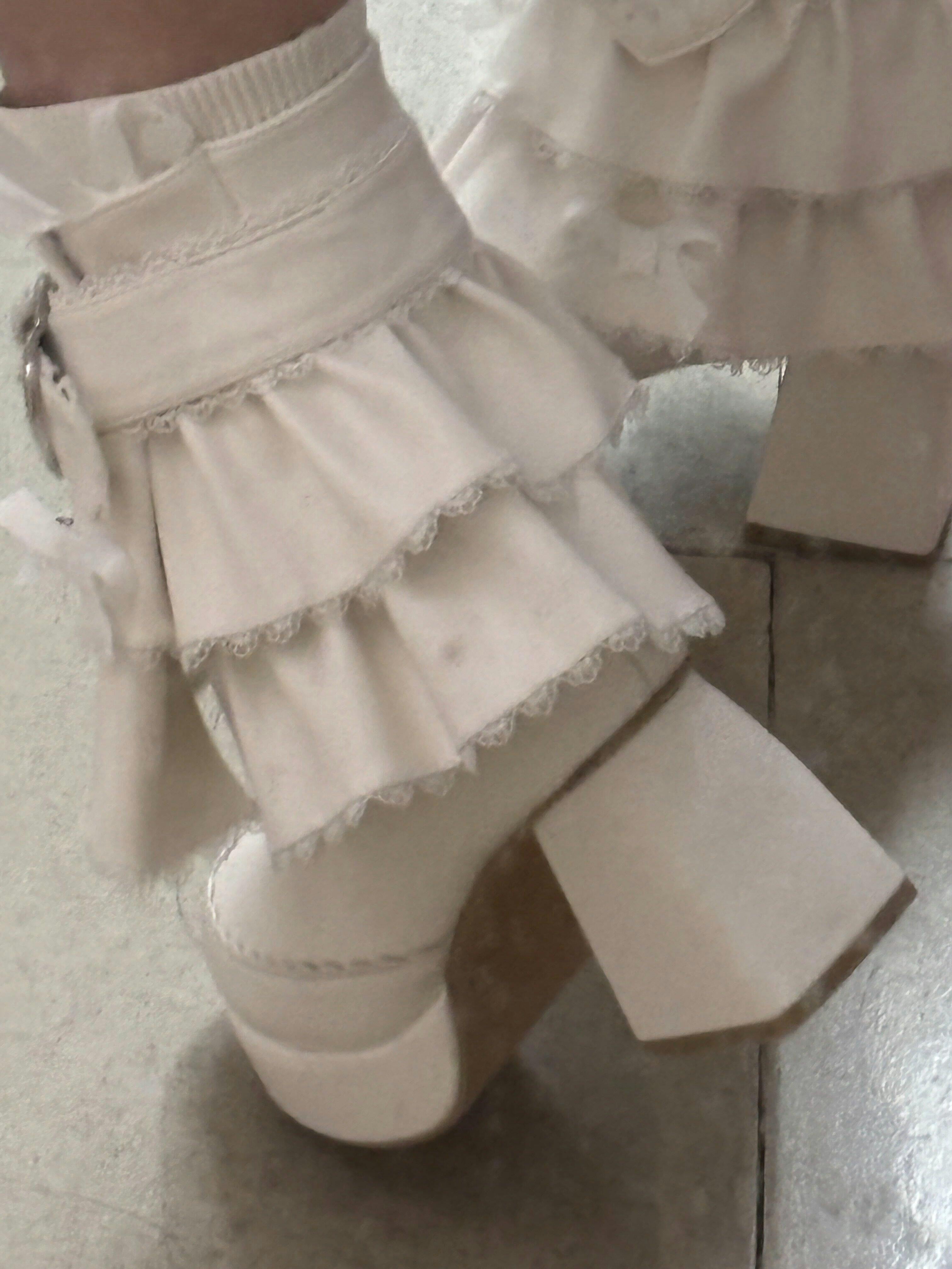 Step into whimsy with these enchanting Cheese Mango Cream Crepe Snow Boots—a coquette-inspired design featuring delicate ruffles and charming buckle accents. These elevated heels deliver that coveted pretty-girl aesthetic. The original design ensures you'll stand out from the crowd.