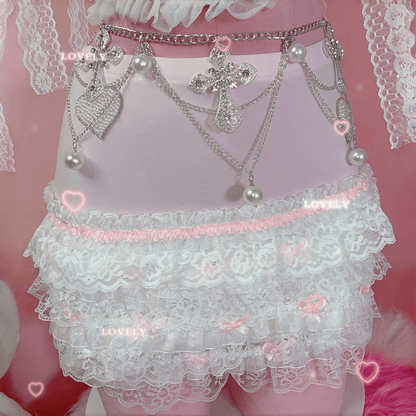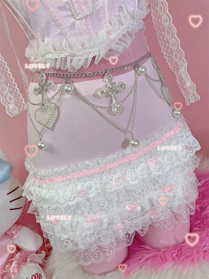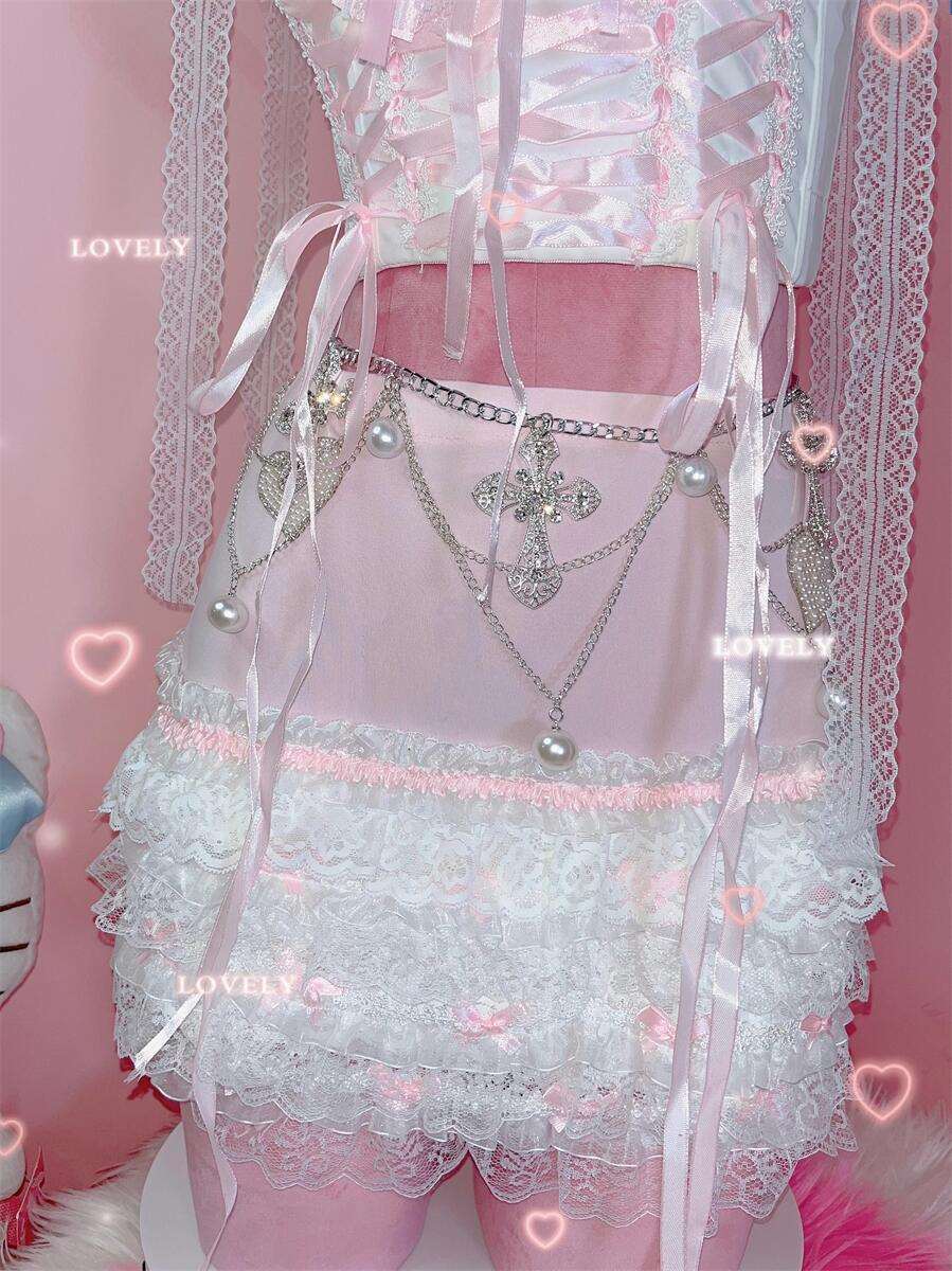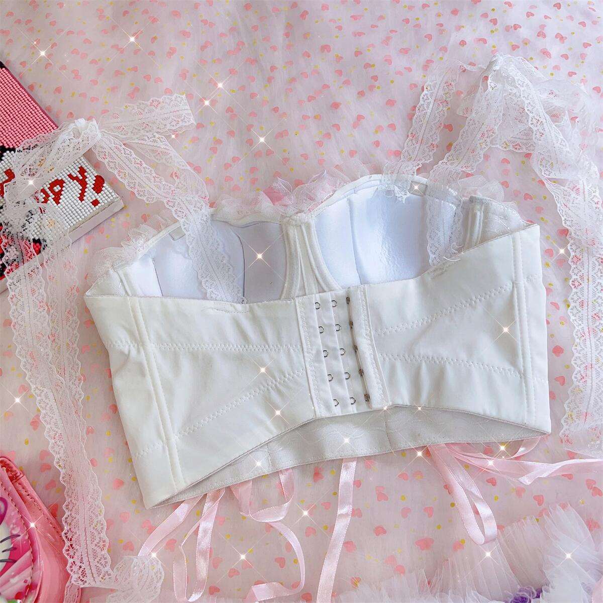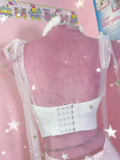 Coquette Sexy Millennial Girl Kitty Lace White Camisole & Skirt Two Piece Set