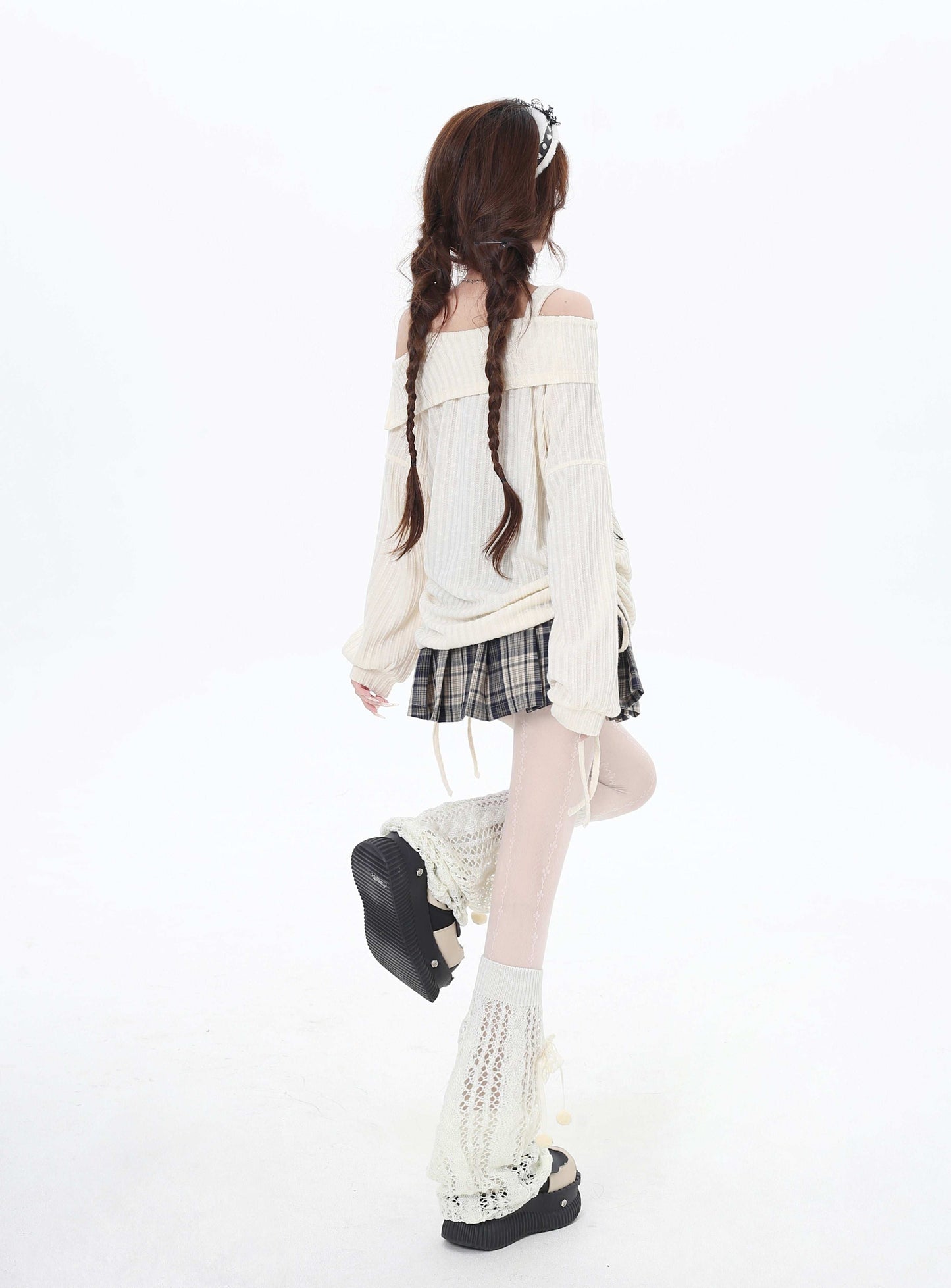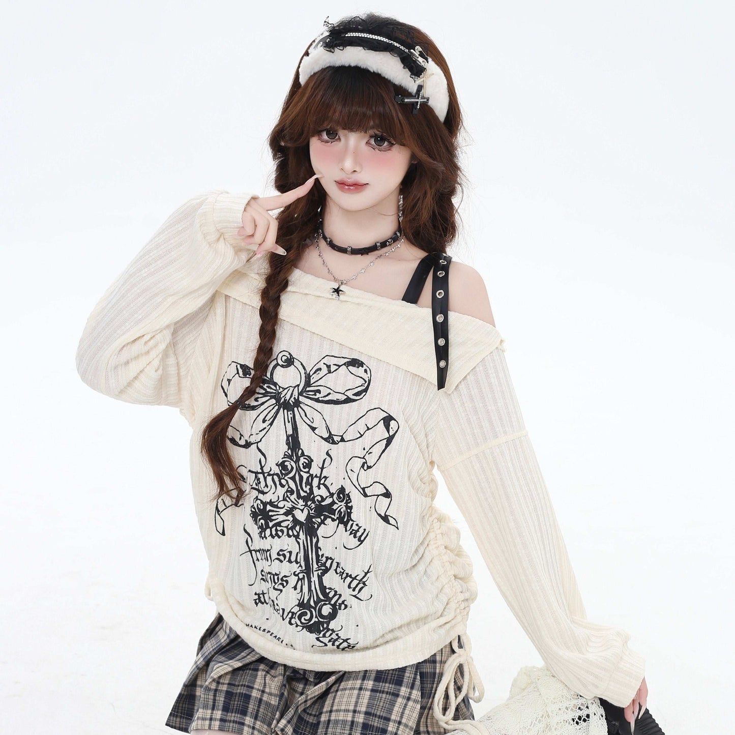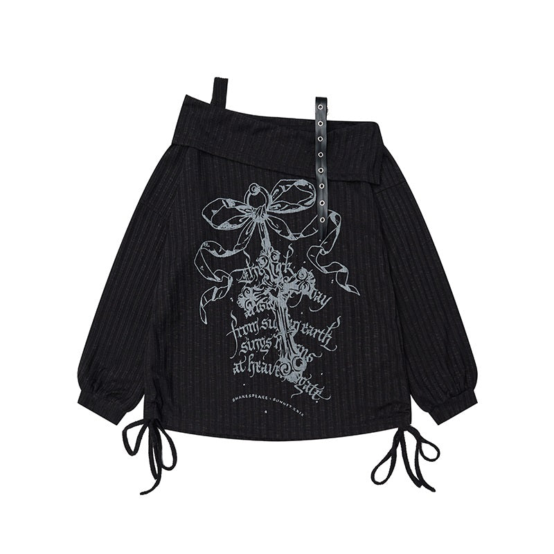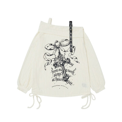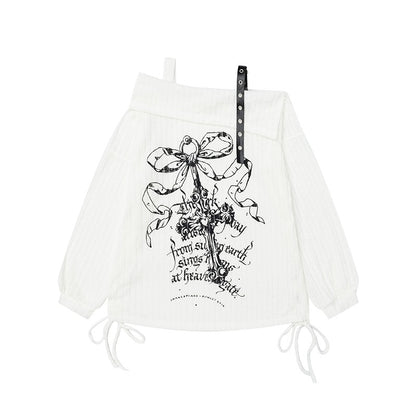 Crazy Girl Cross Bow Off Shoulder Black White Cream Sweater Top