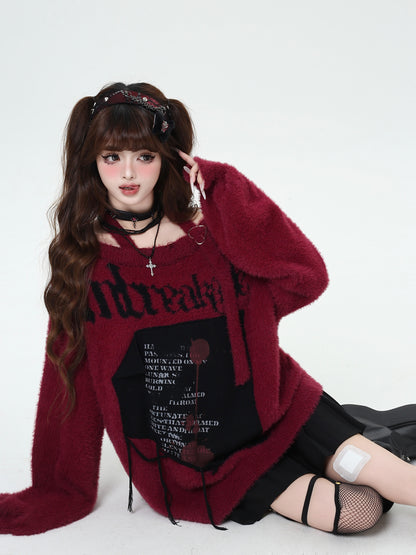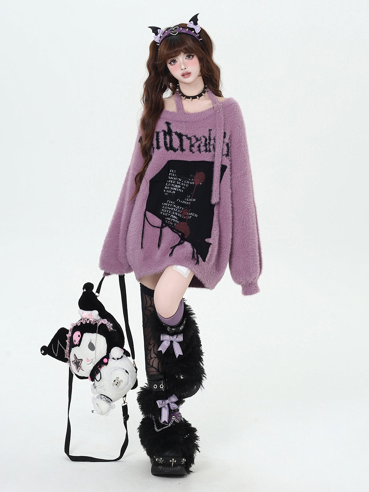 Crazy Girl Romantic Dishonesty Black Red Purple Sweater