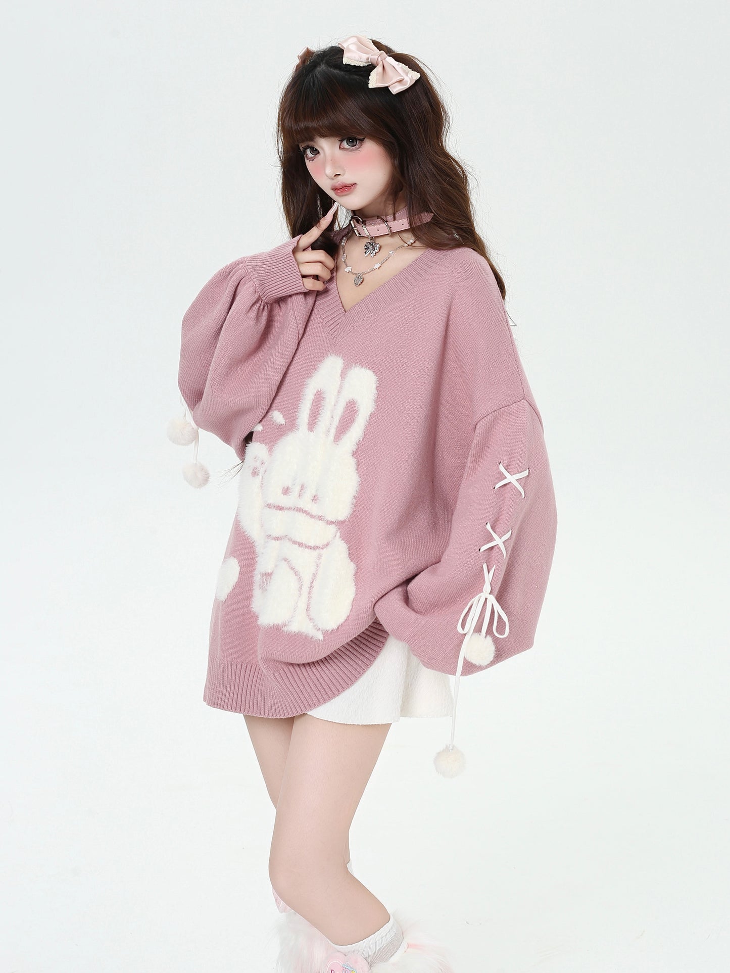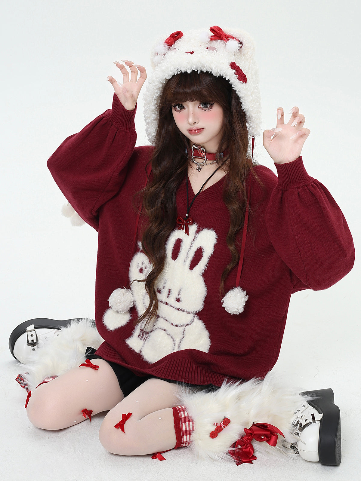 Crazy Girl Wishing Rabbit Pink Black Red Sweater