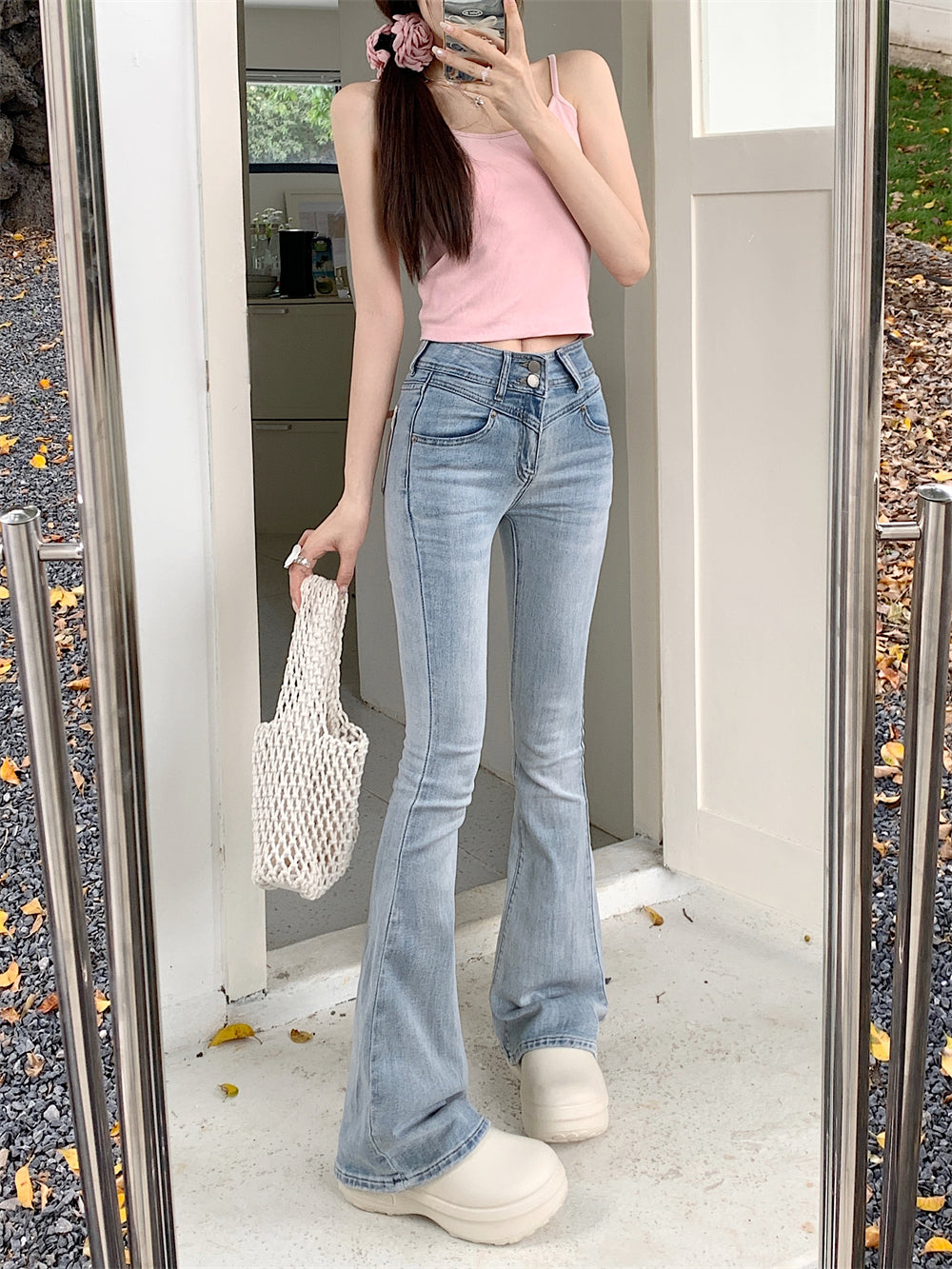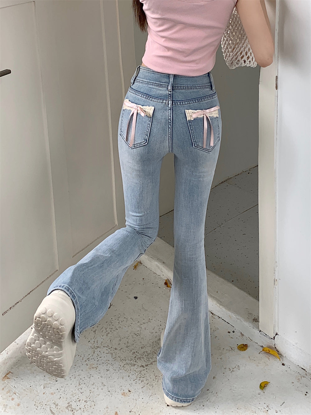 Creamy Cute Coquette Bow Denim Jeans Pants