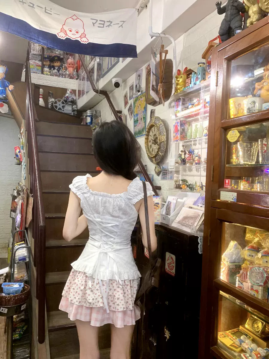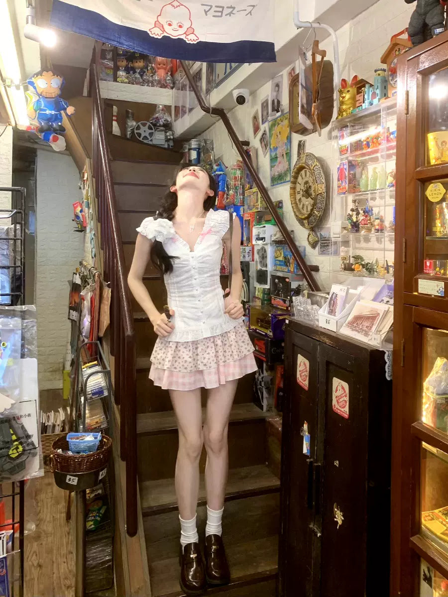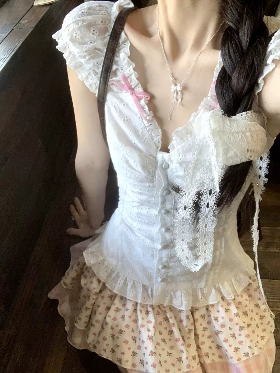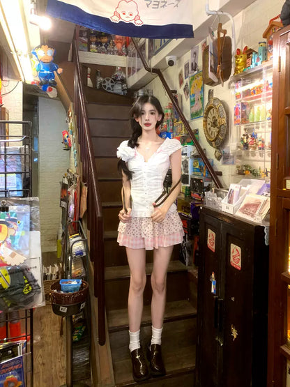 Creamy Cute Dreamcore White Top & Pink Skirt Two Piece Set