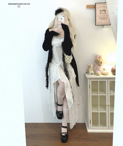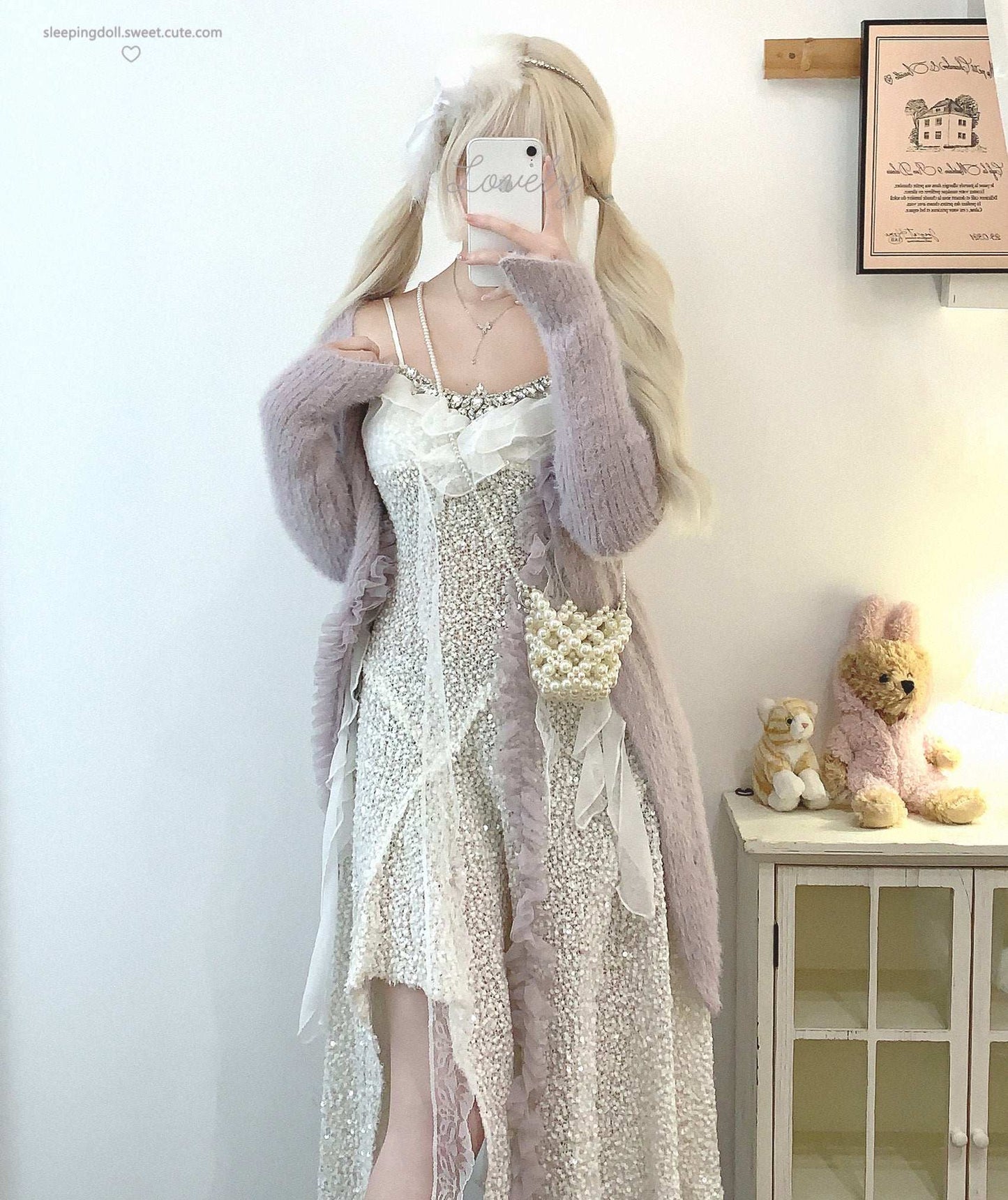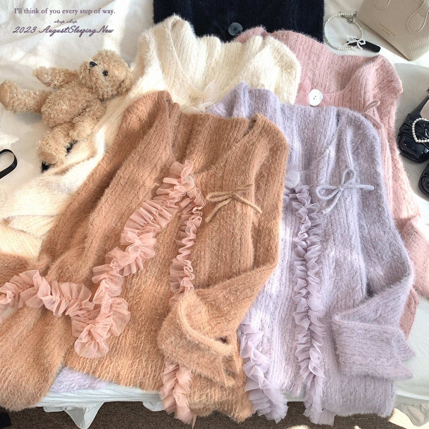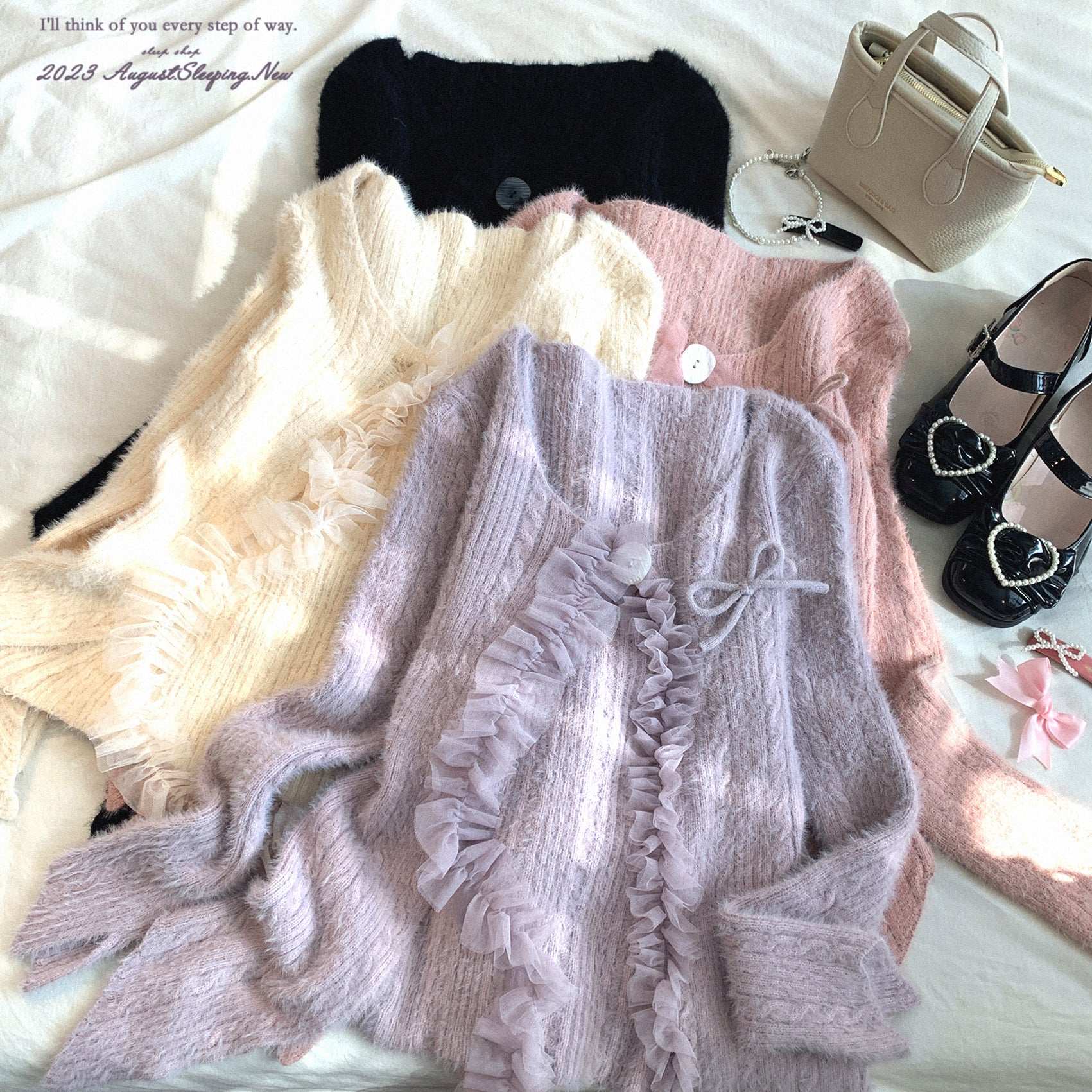 Dormir Doll Tassel Poem Pink Black Cream Purple Orange Fuzzy Cardigan