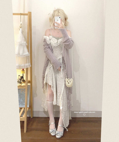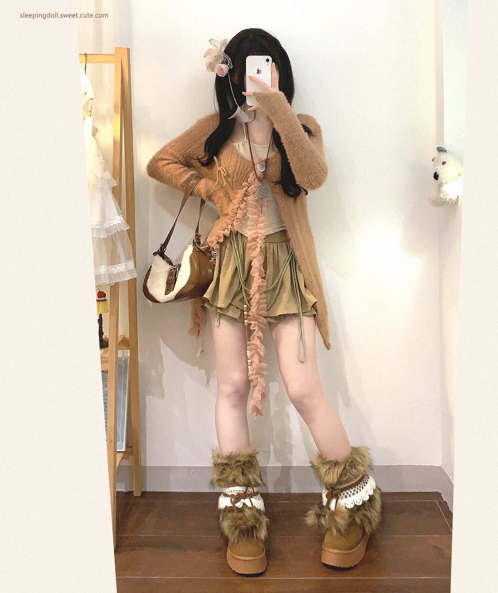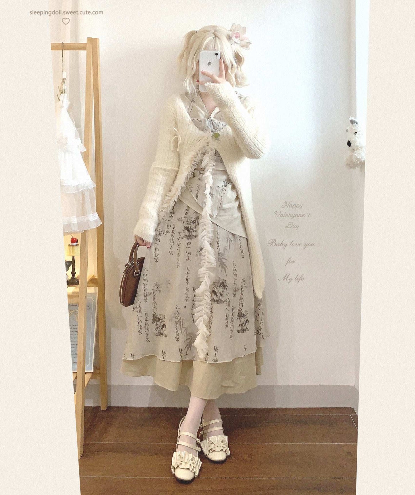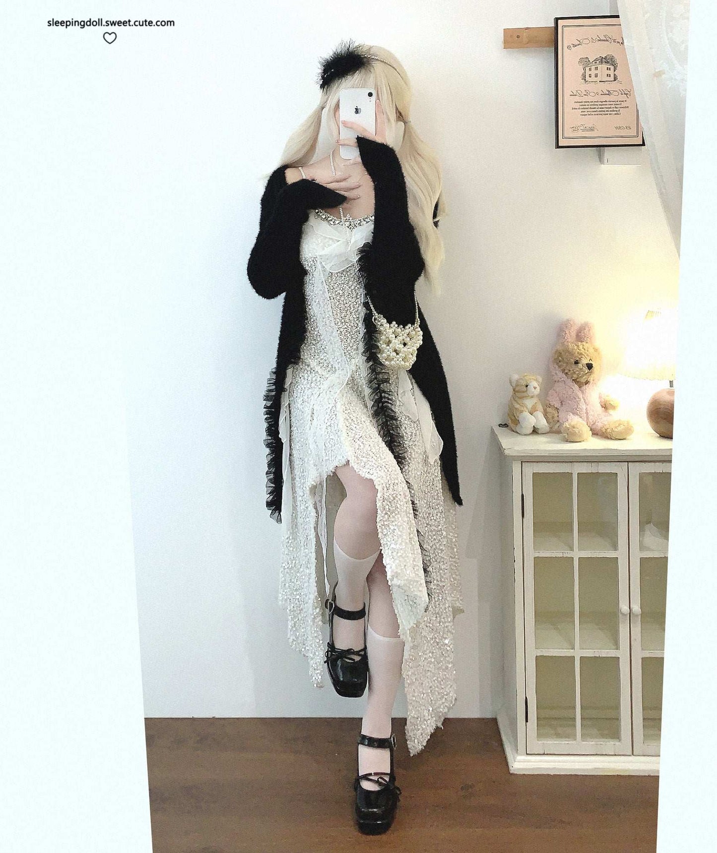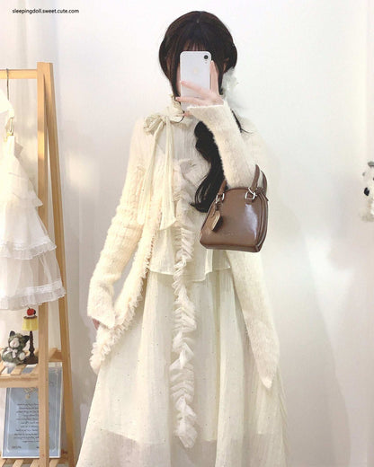 Dormir Doll Tassel Poem Pink Black Cream Purple Orange Fuzzy Cardigan