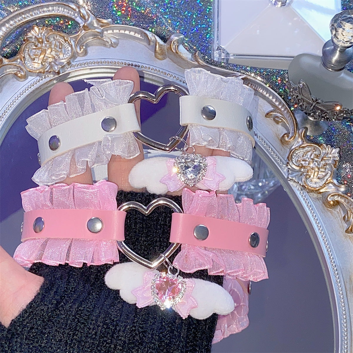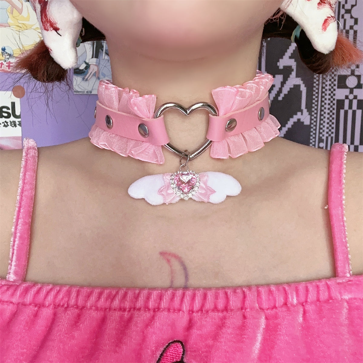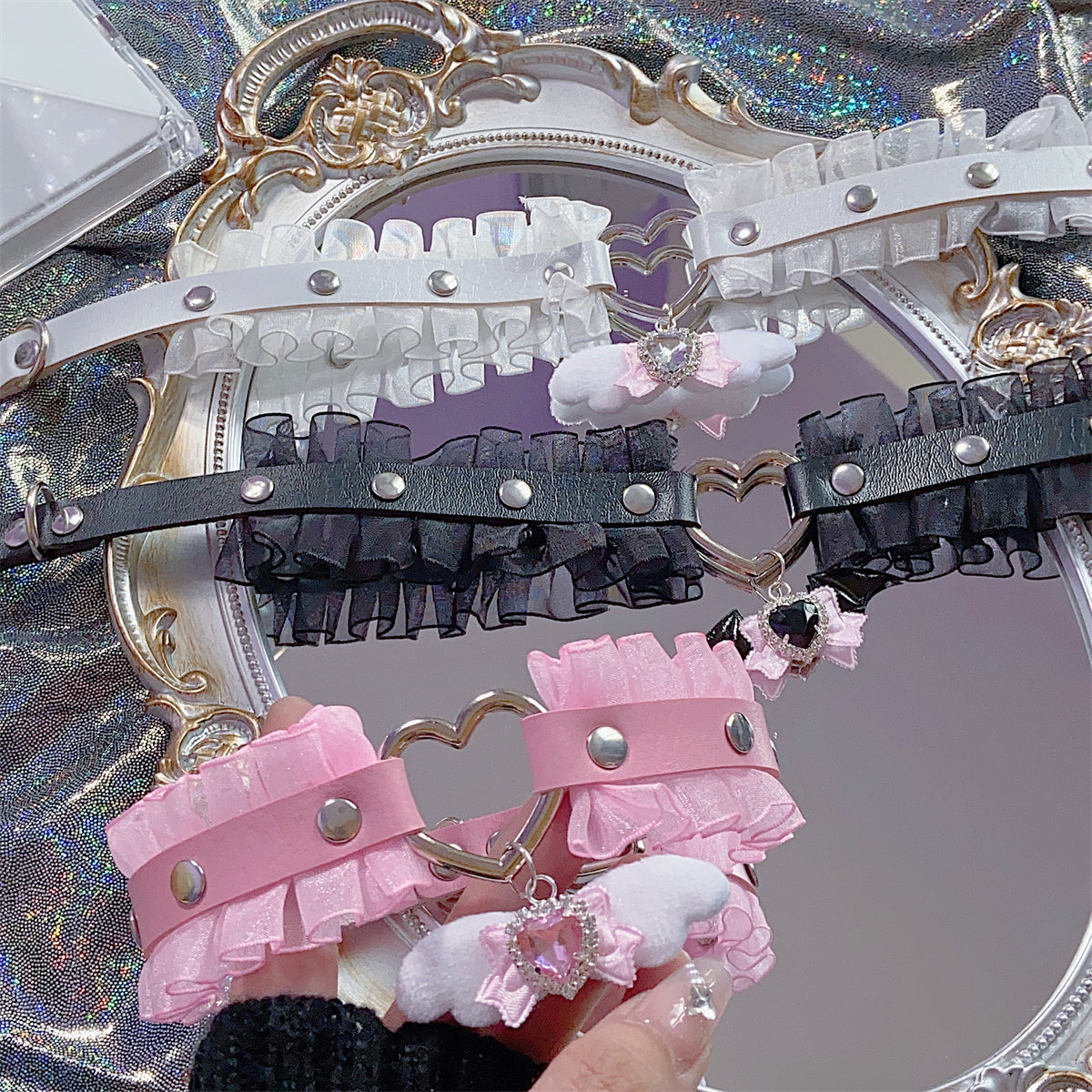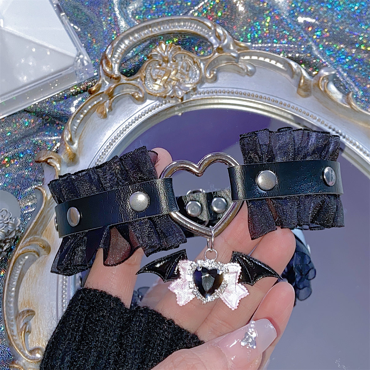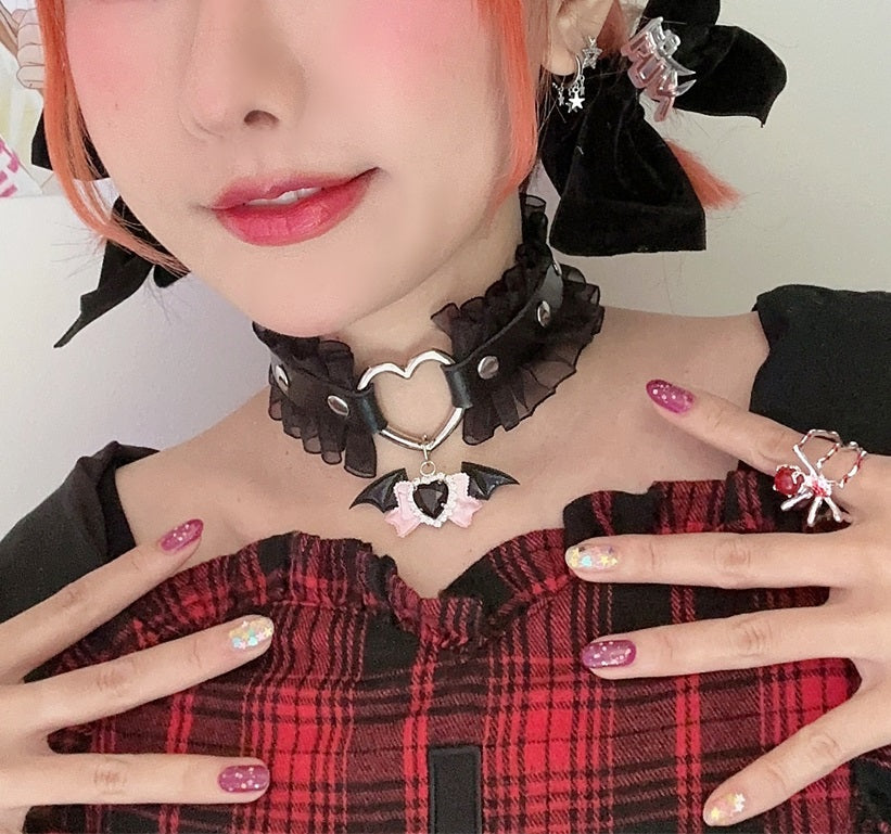EGL Heart Bow Angel Devil Wings Lace Choker Necklace