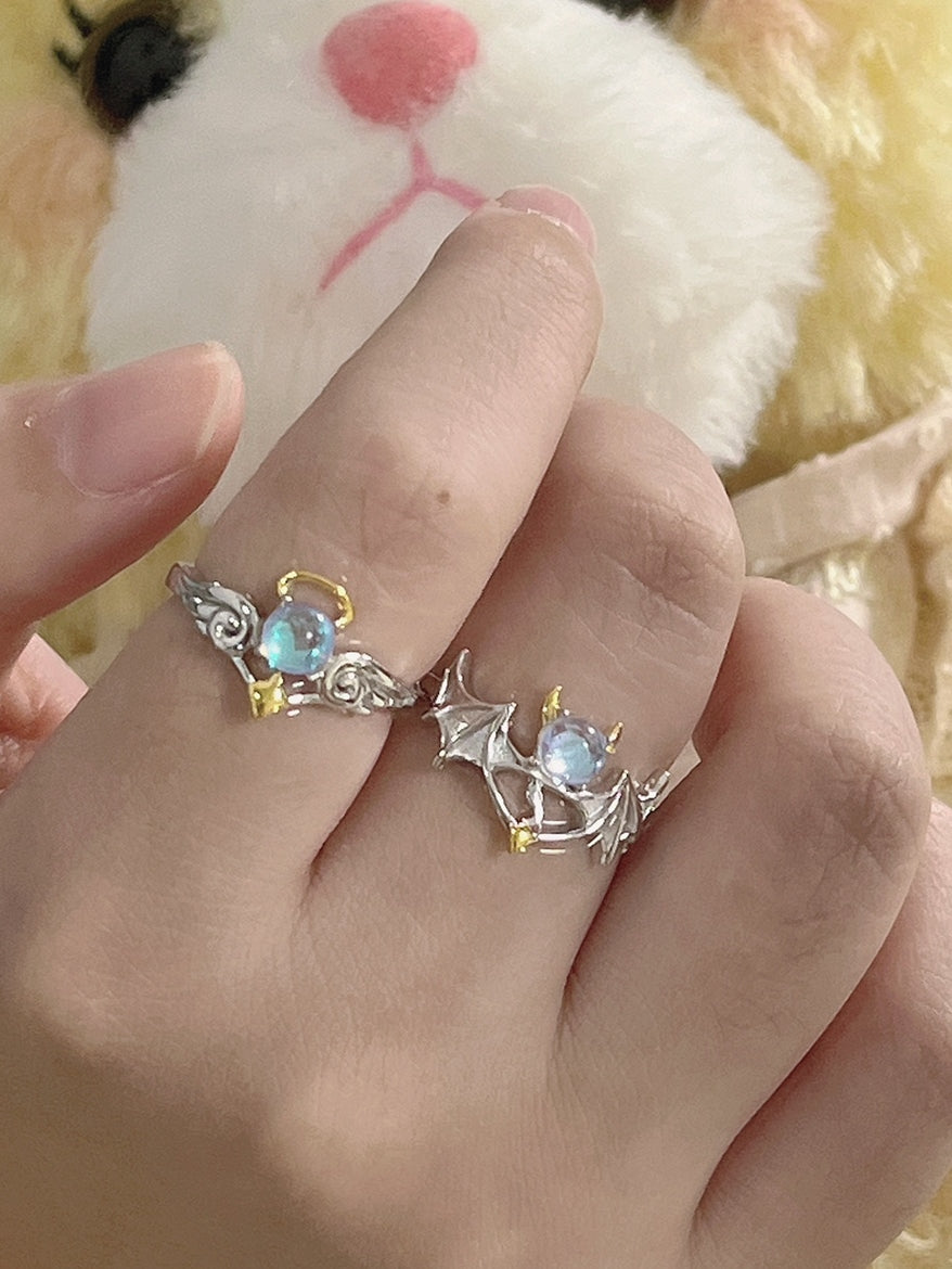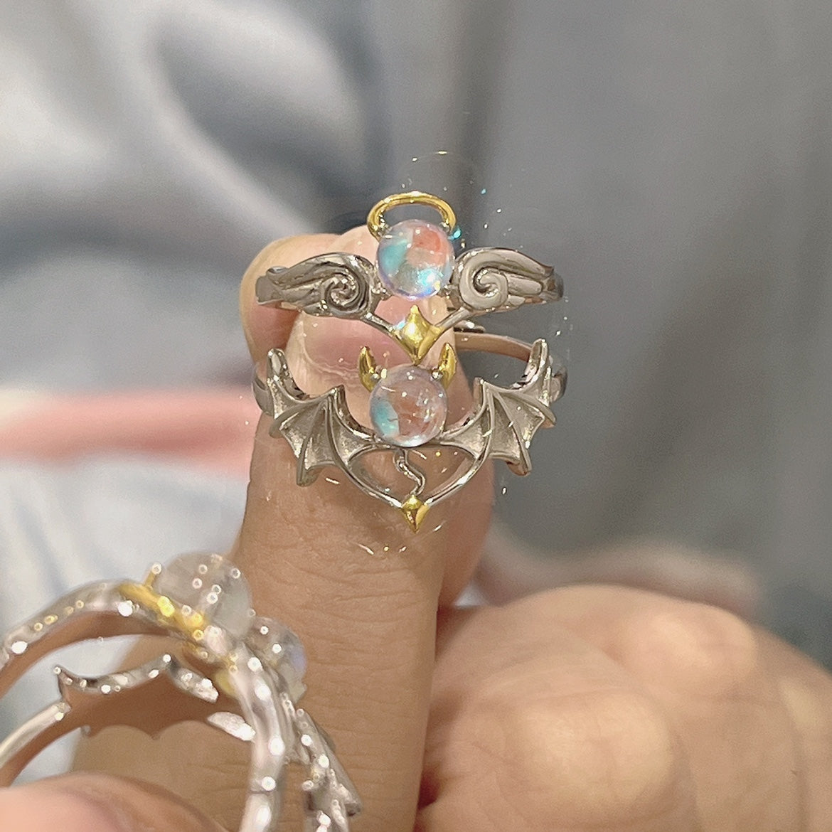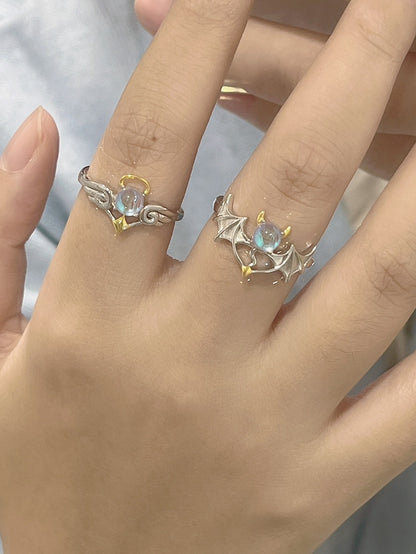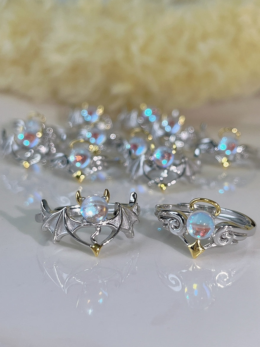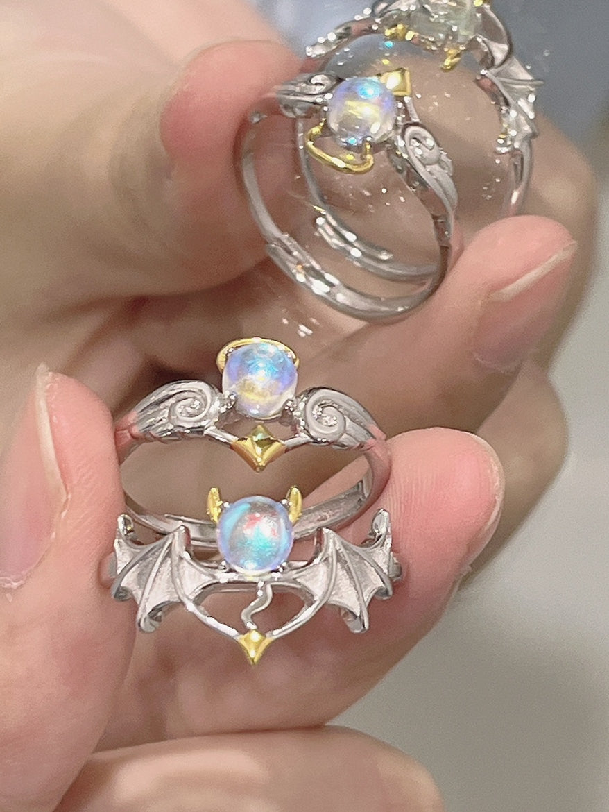 Handmade Angel & Devil Wings Moonstone S925 Silver Couples Ring Accessories