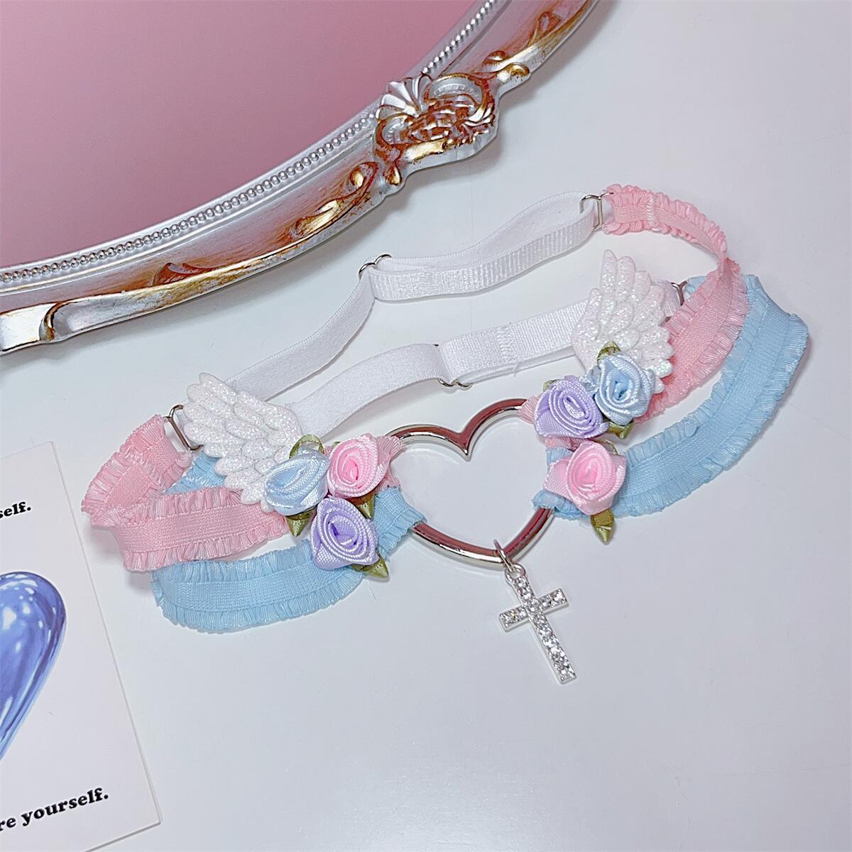 Heart Rose Angel Coquette Pink Blue Black White Thigh Strap Garter