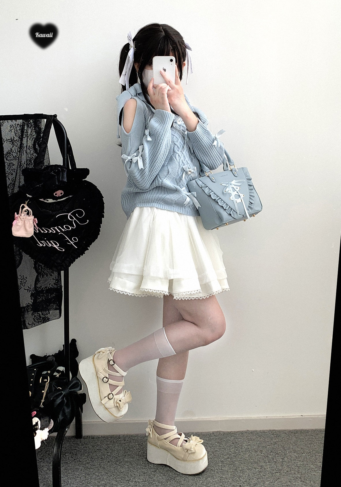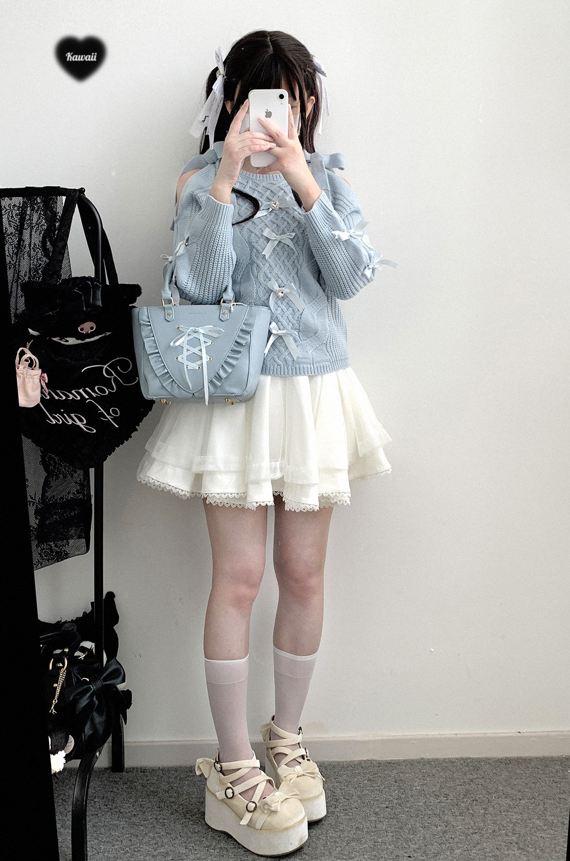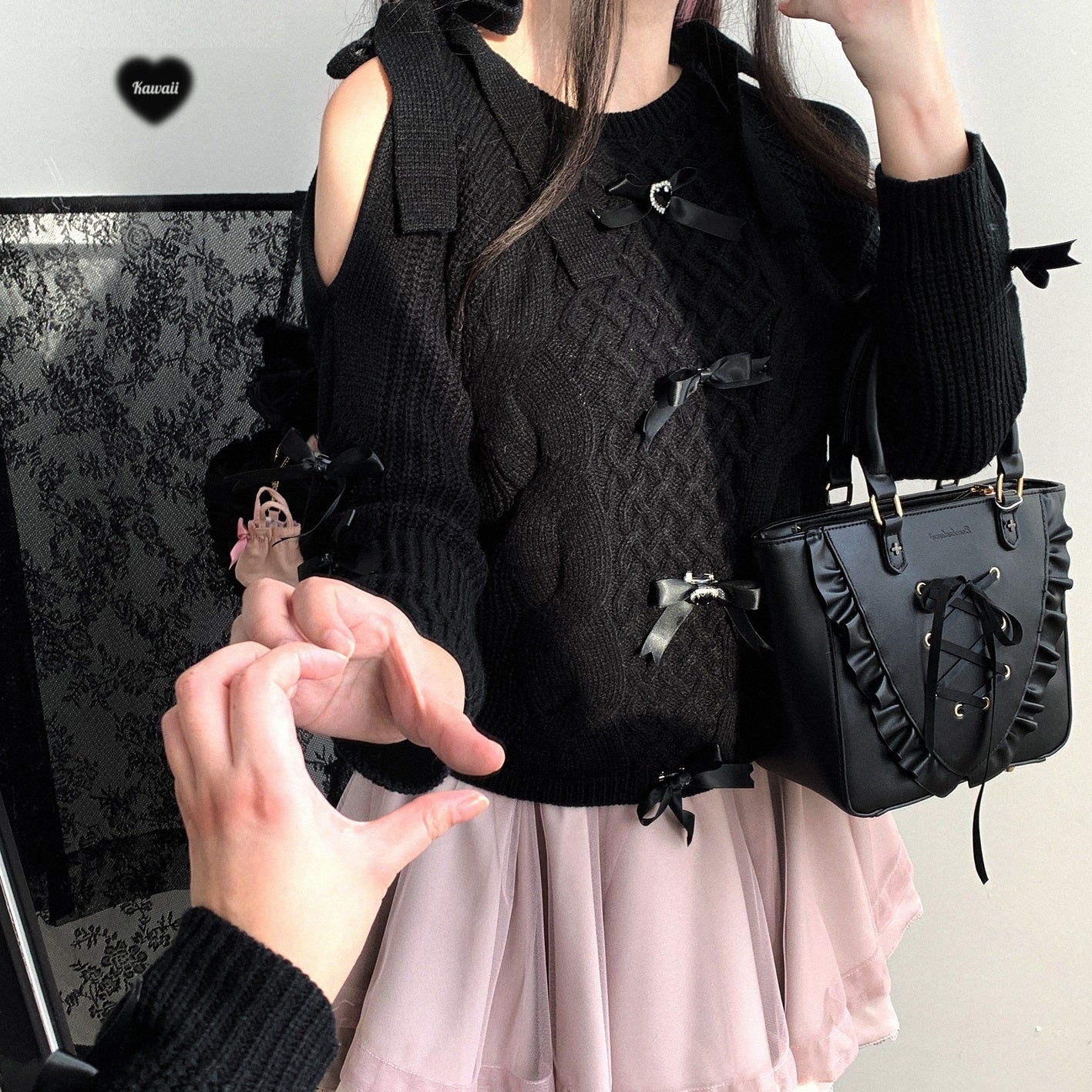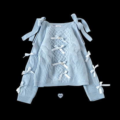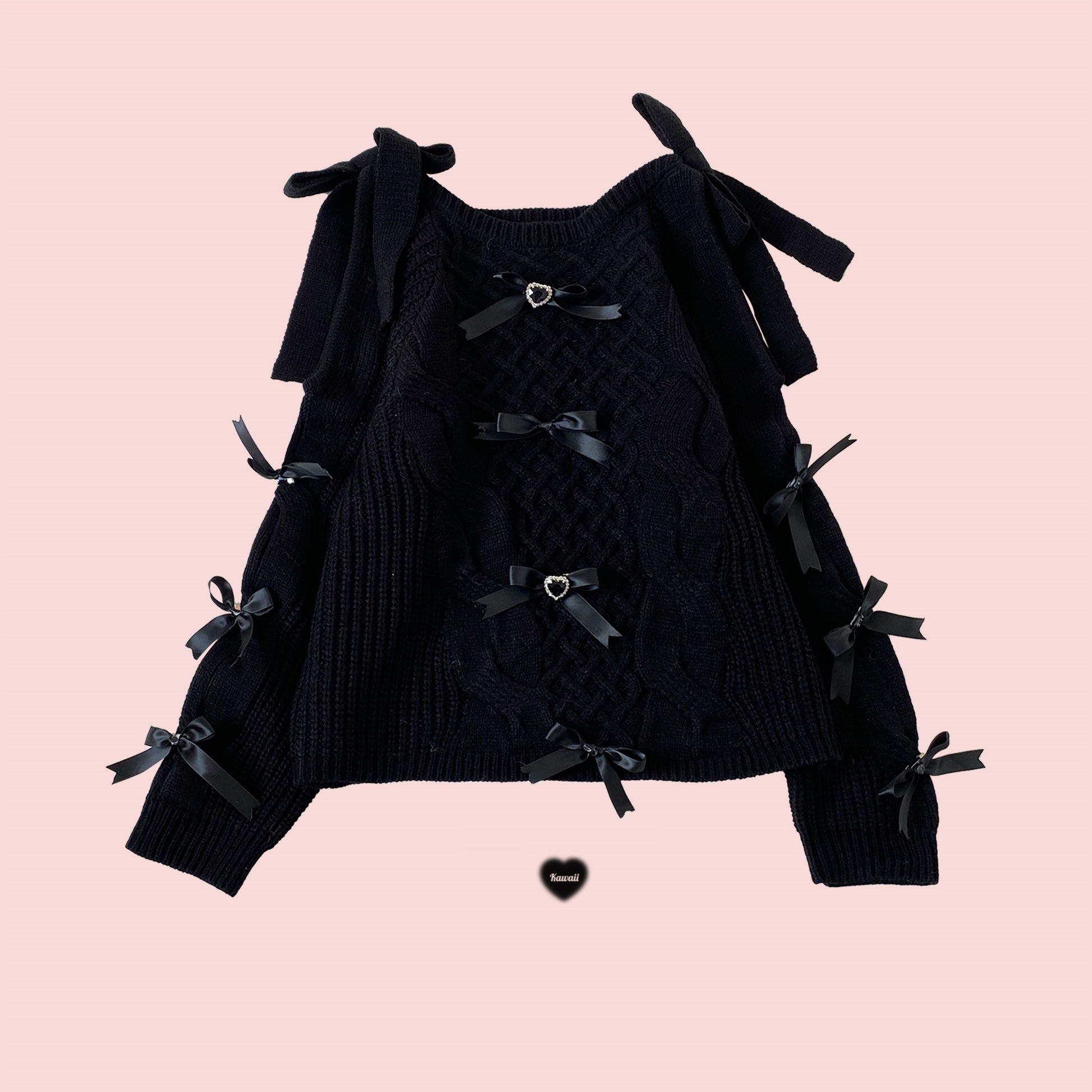 Kitten Bullet Gem Ribbon Bow Pink Blue Black Sweater