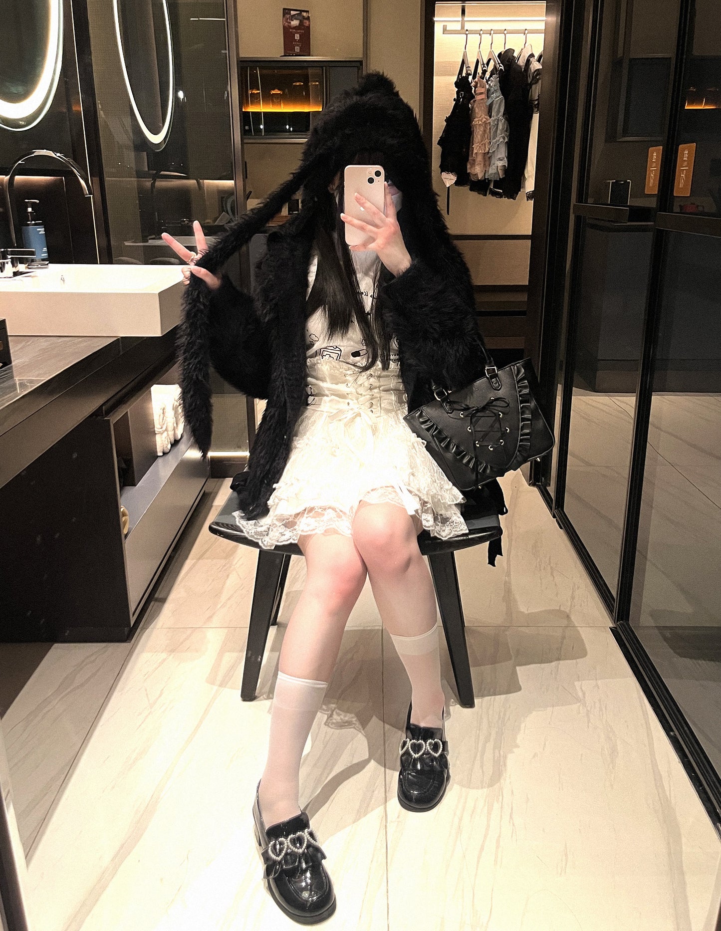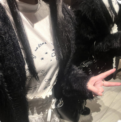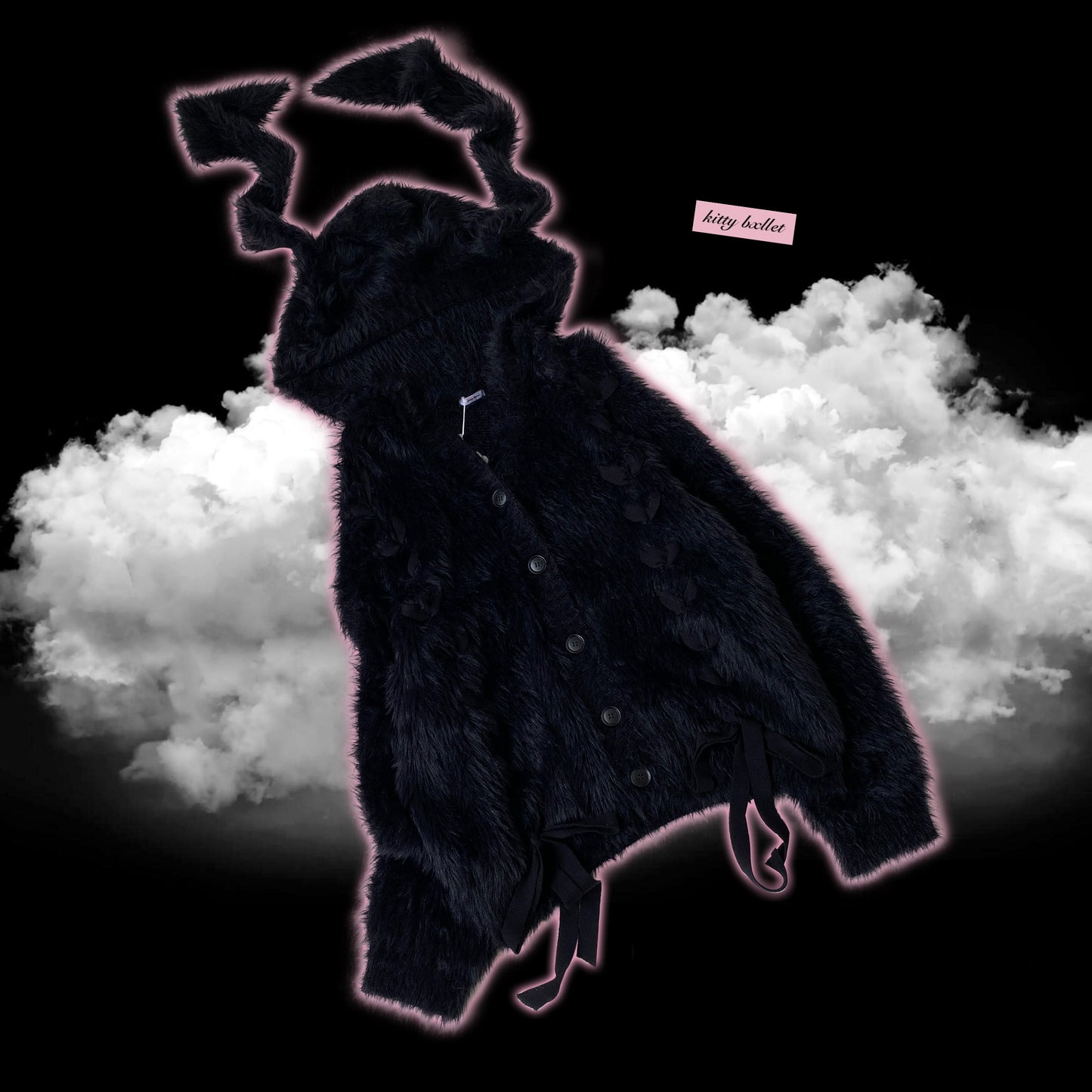 Kitten Bullet Long Rabbit Ears Plush Black Fuzzy Hoodie