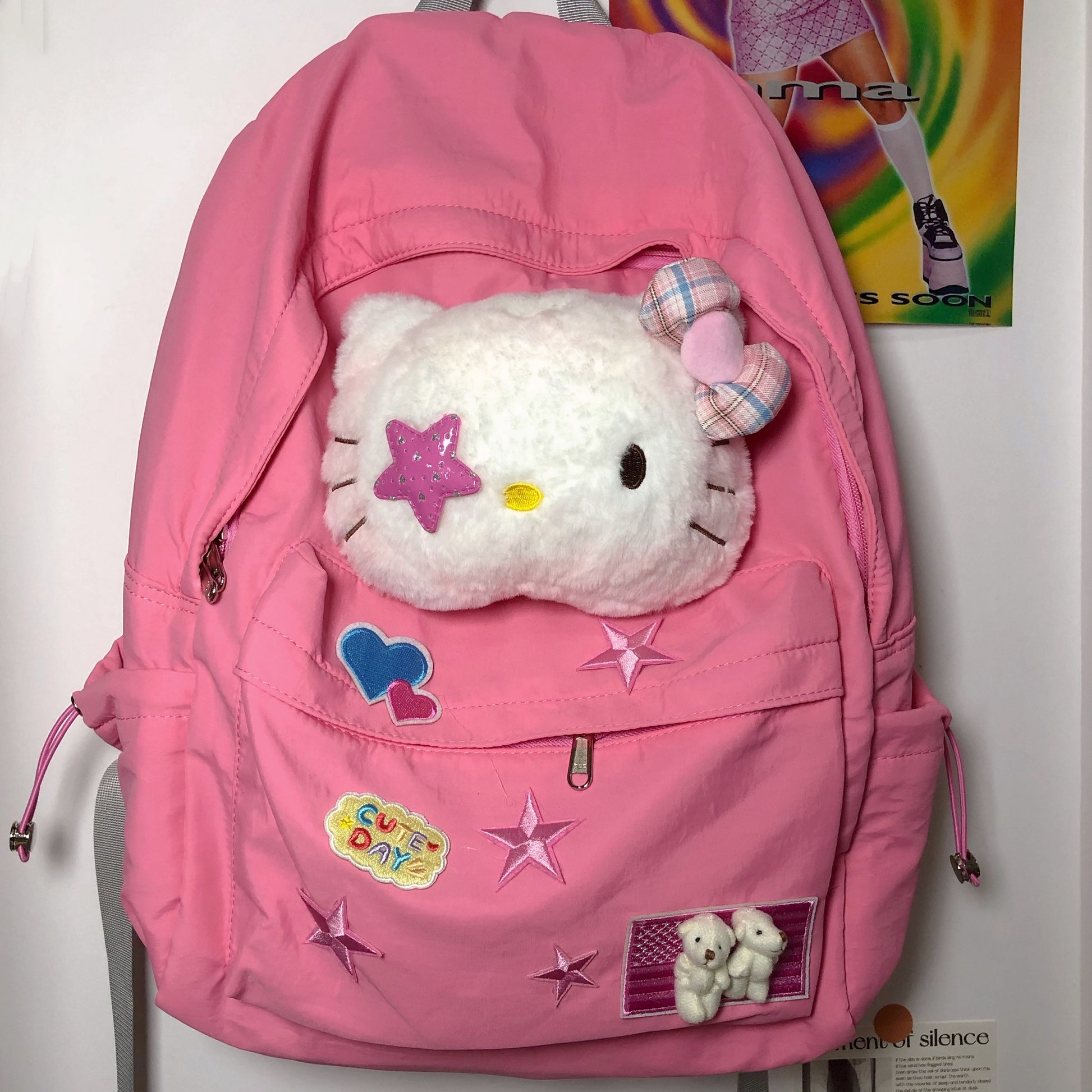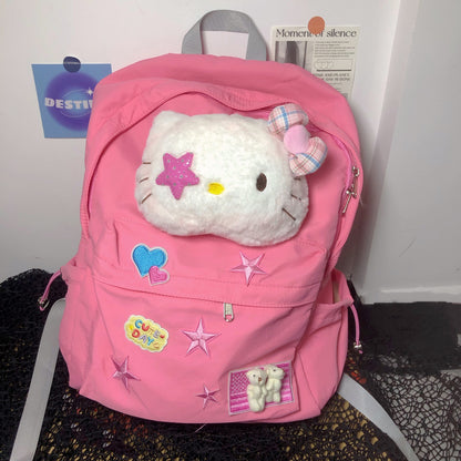 Kitty Cat Pink Cartoon Y2k Star School Backpack Bag