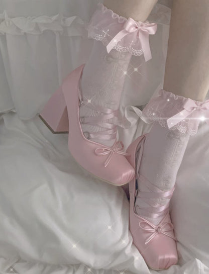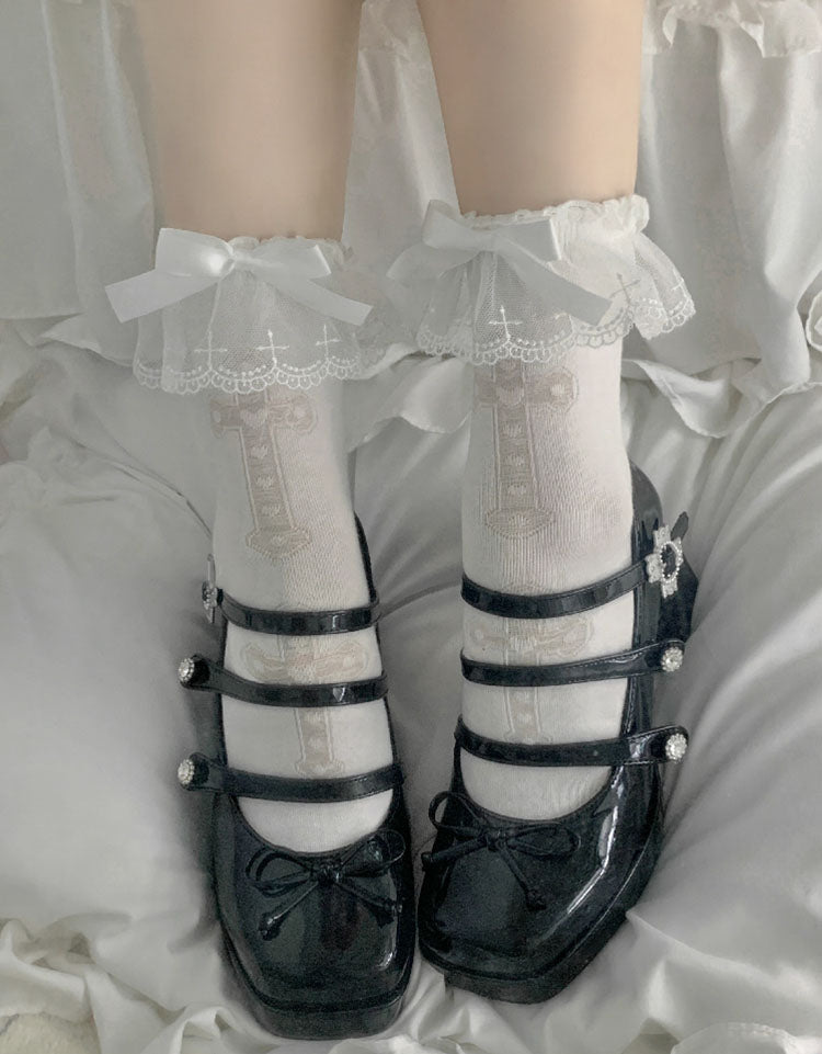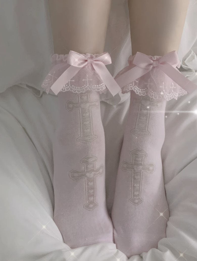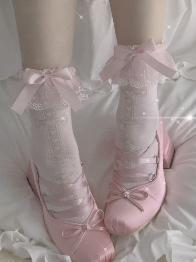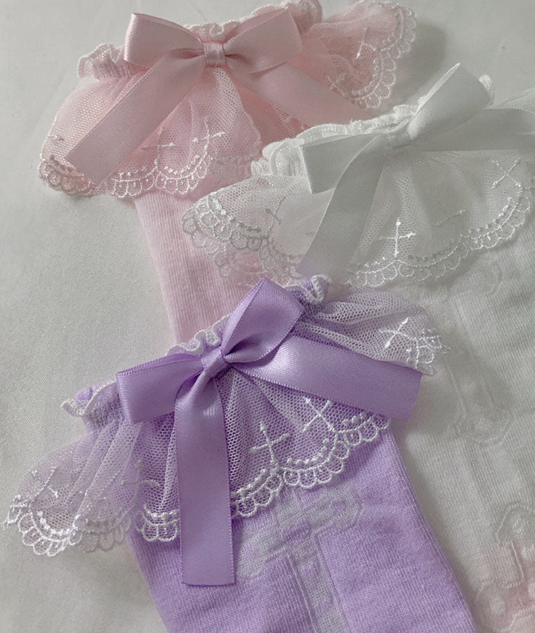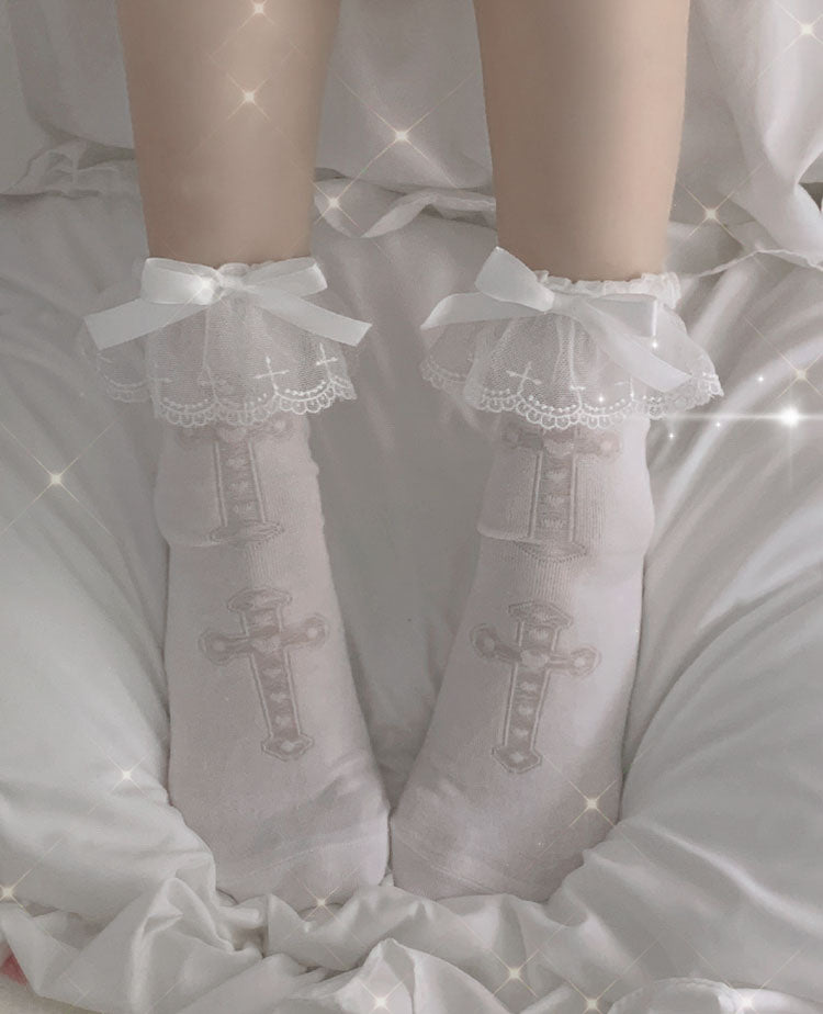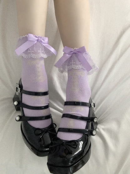 Lolita Cross White Pink Purple Lace Bow Small Socks