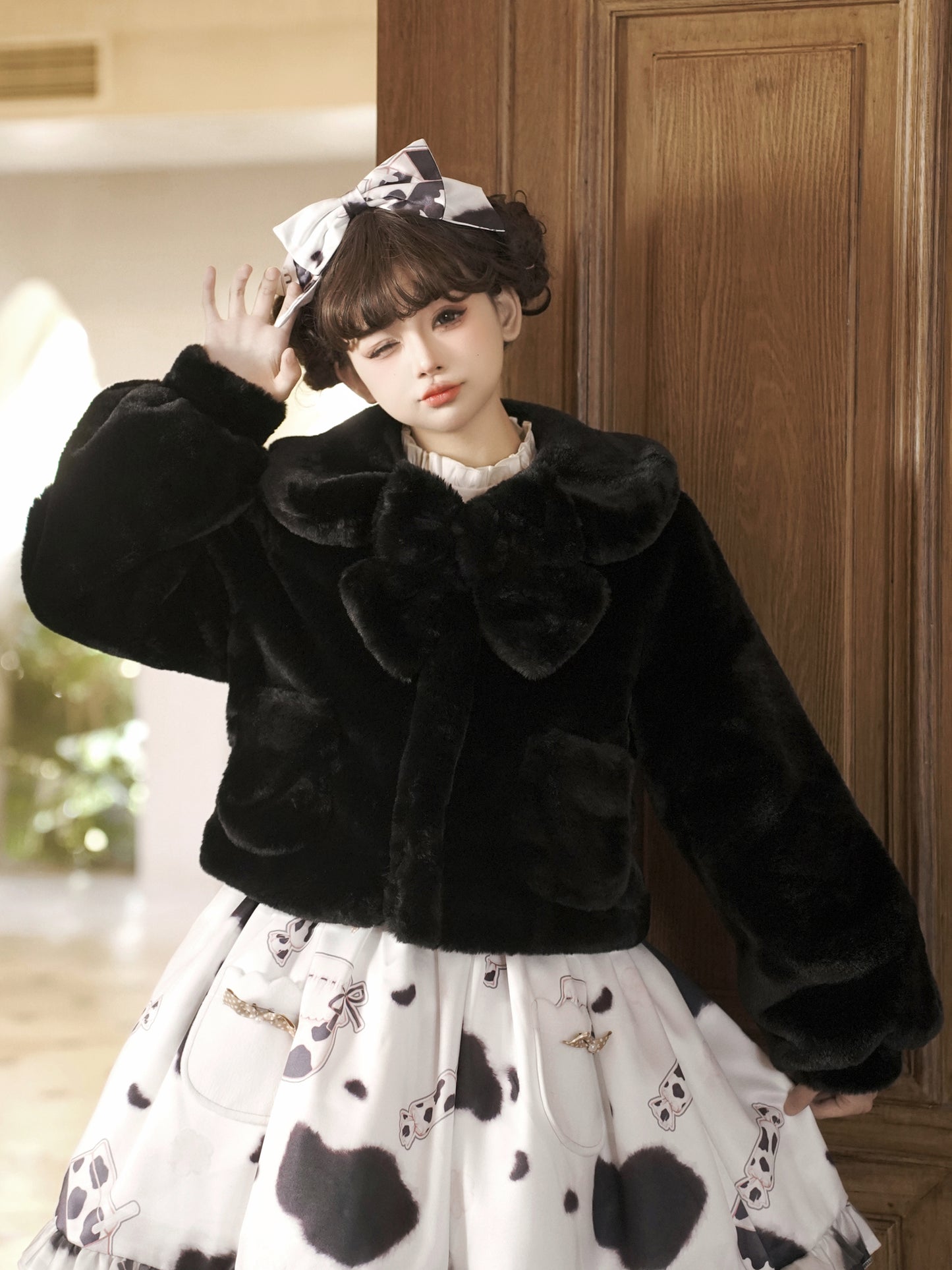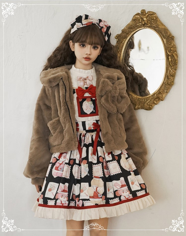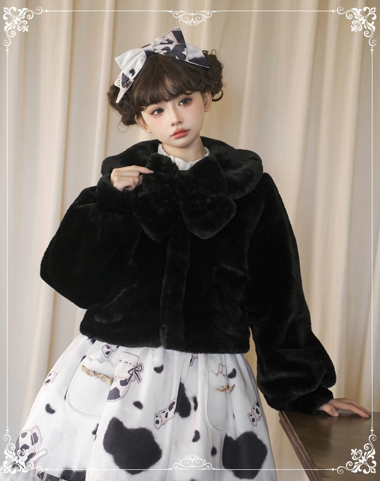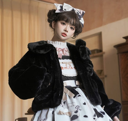 Lolita Yomi Doll Plush White Black Brown Winter Jacket Coat