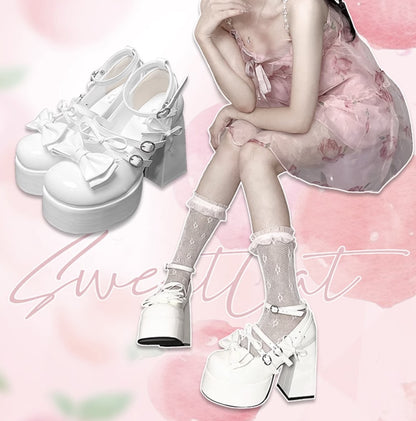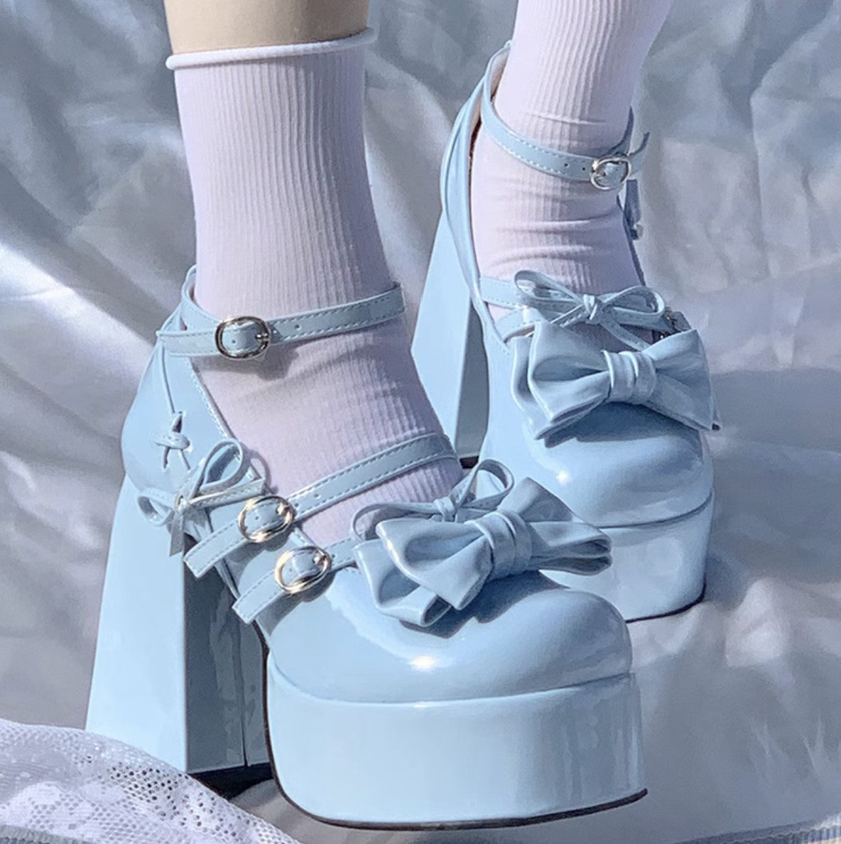 Meow Meow Heart Summer Sweetheart Lolita Blue Pink White Black High Heels Shoes