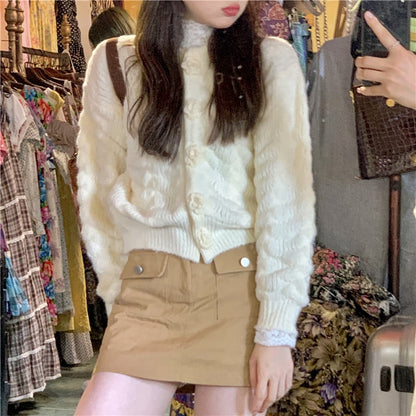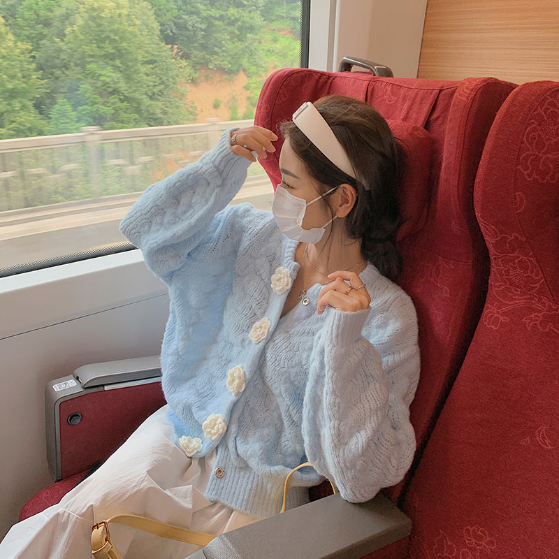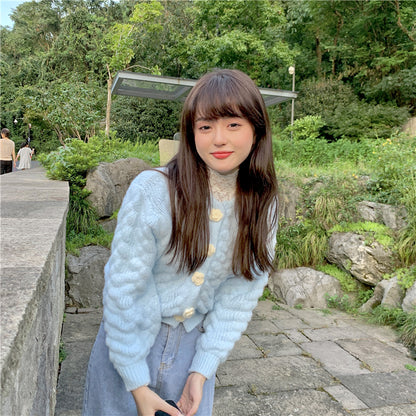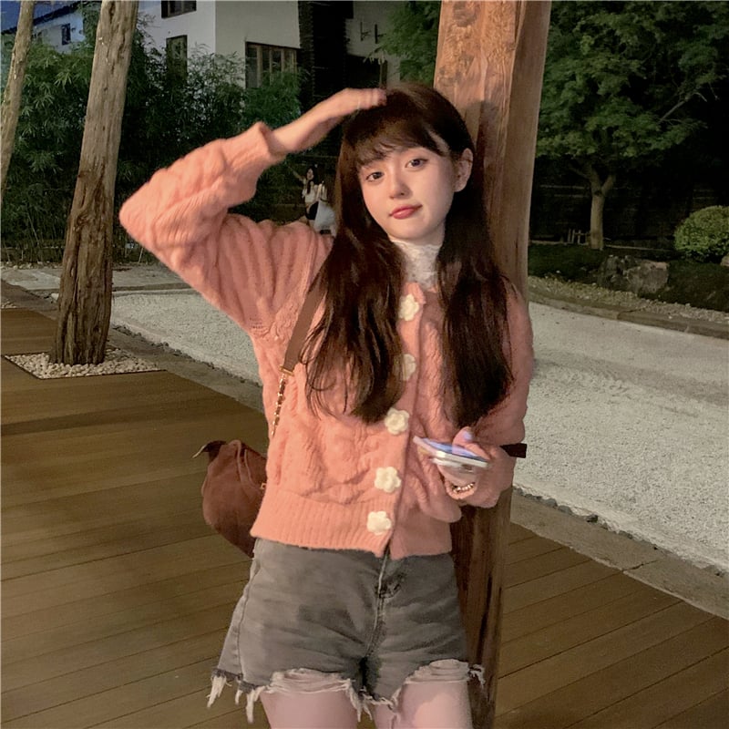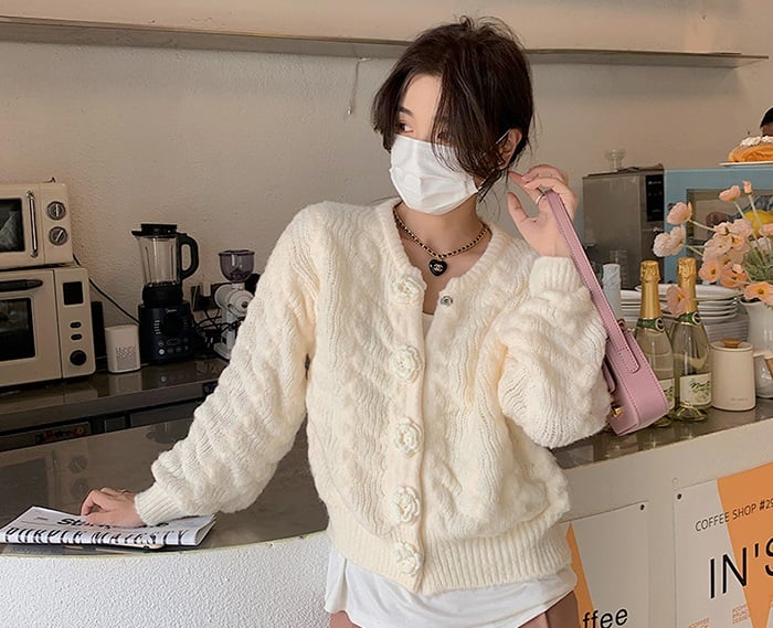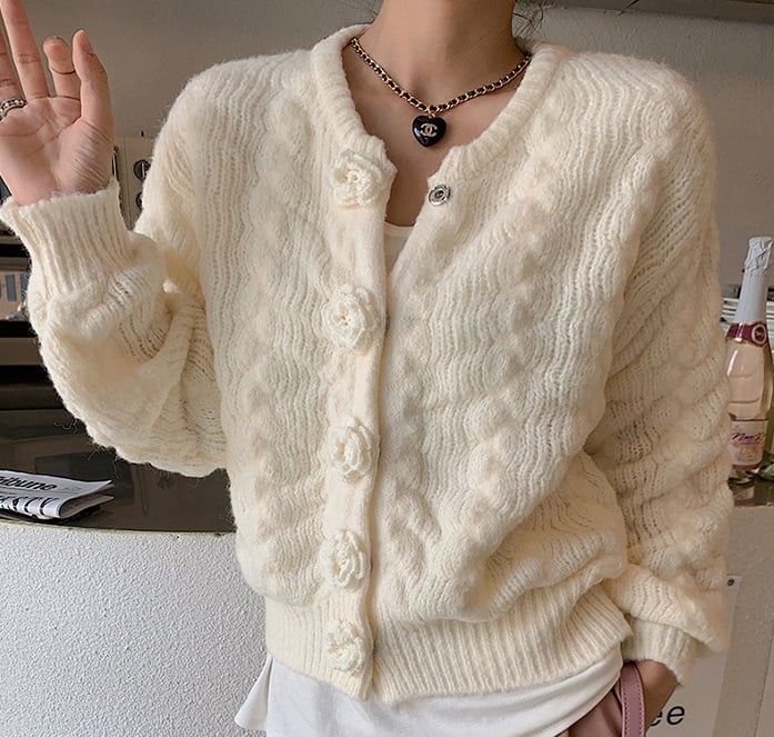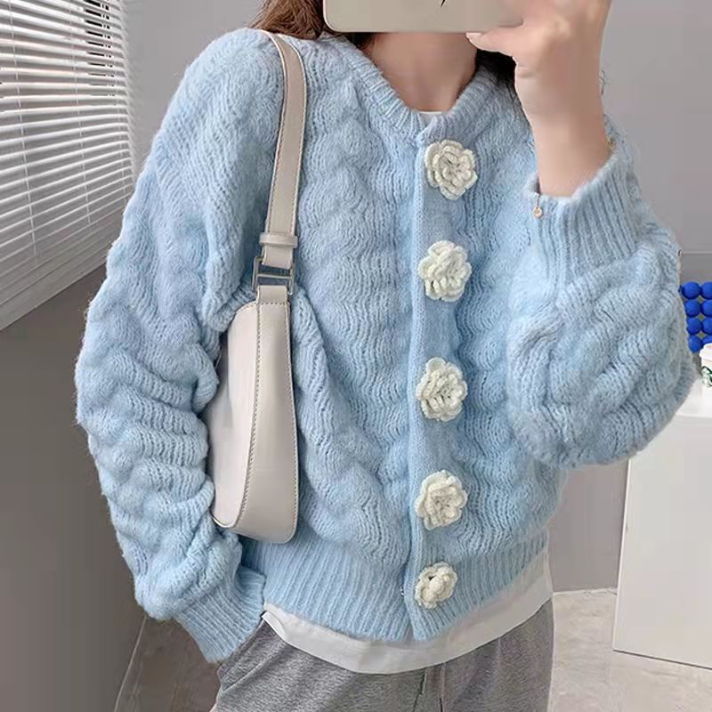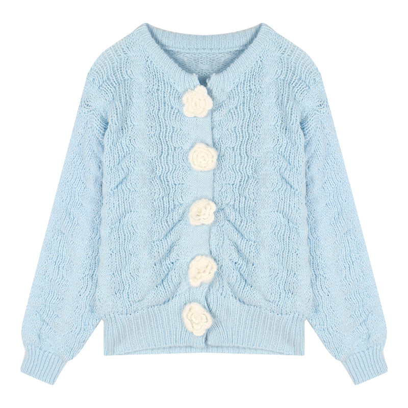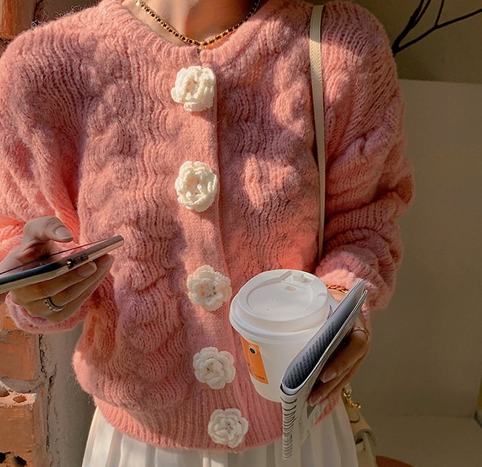 Rose Button Knit Pink Cream Blue Sweater Cardigan