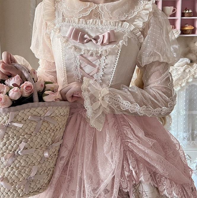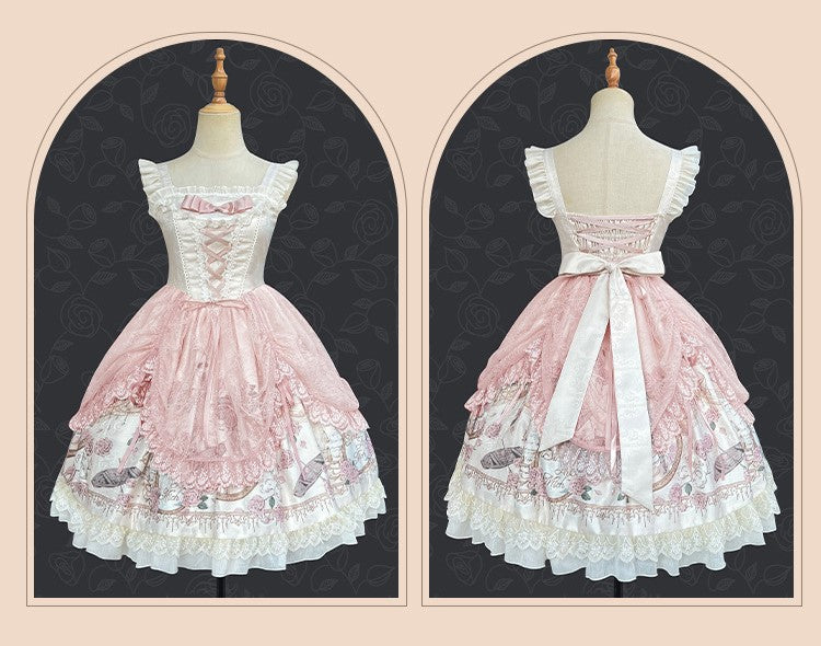 Rose Garden Lace Elegant Original Lolita EGL Pink & Black Strap Dress