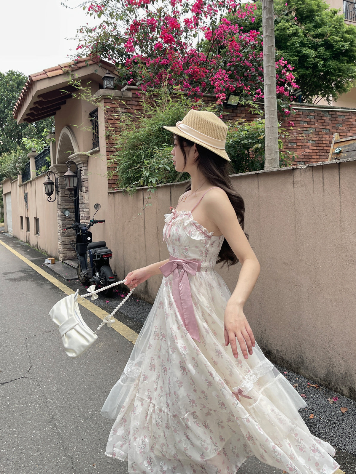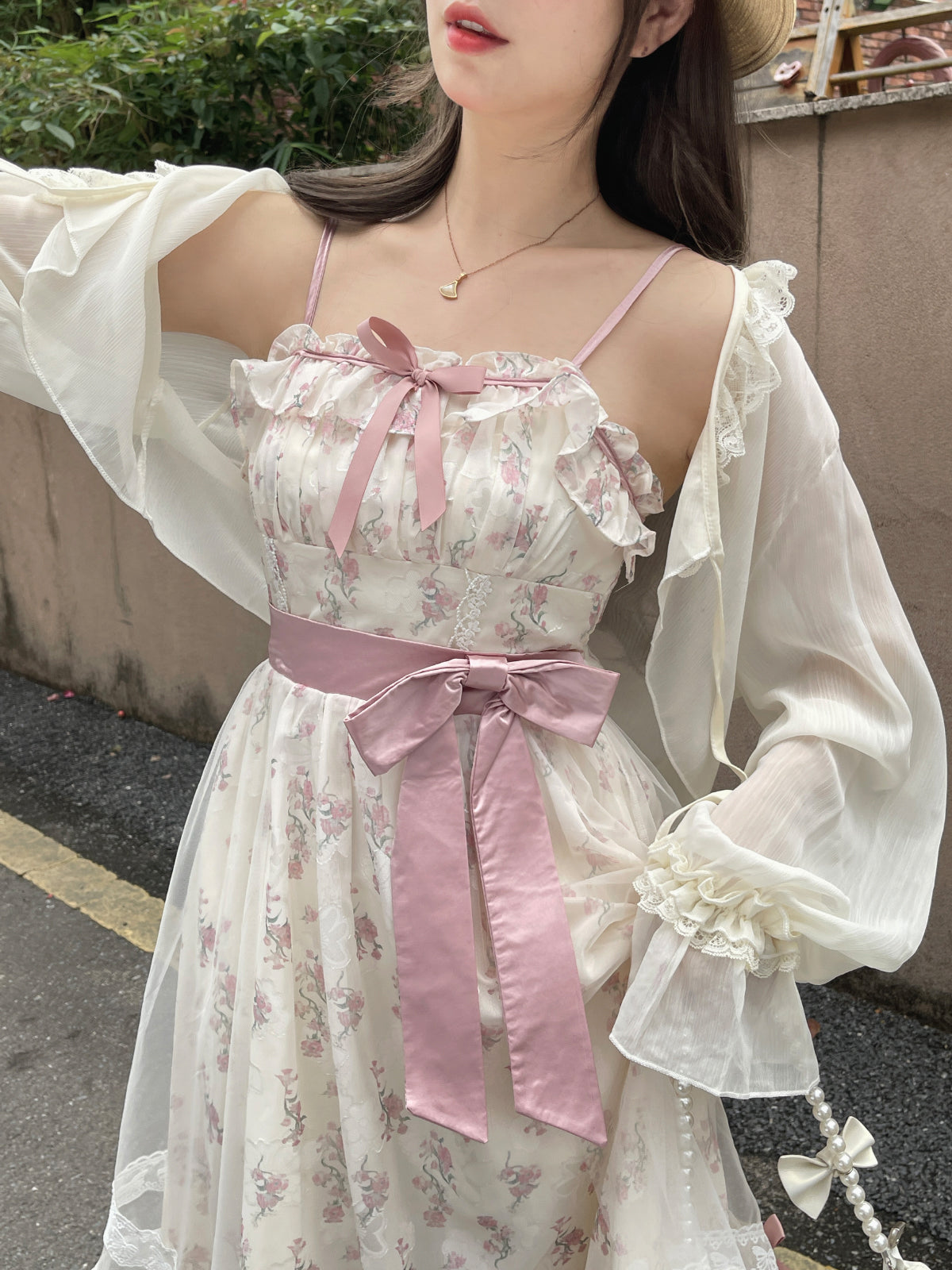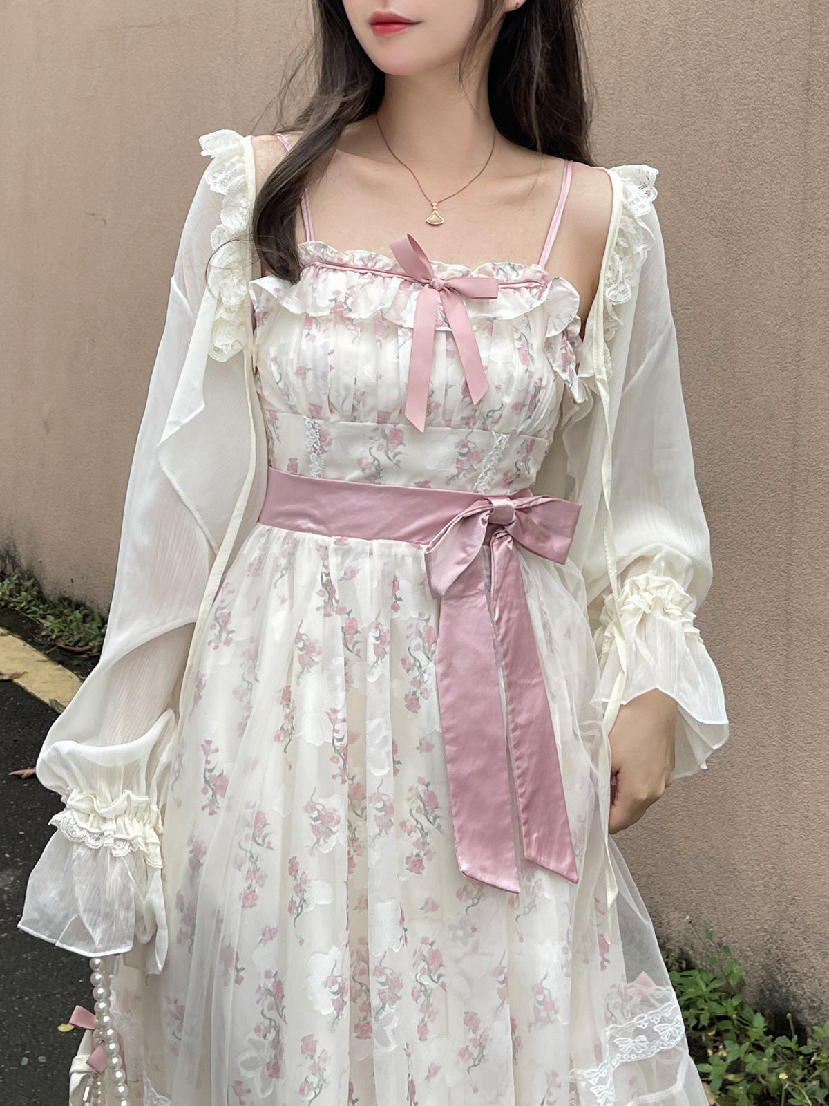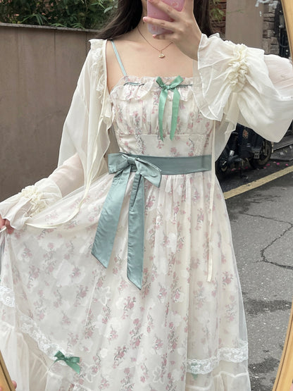 Ruellia Spring Hyde Garden Floral Pink Green Dress & Cardigan Two Piece Set