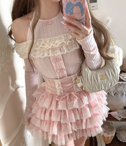 Sound of Spring Pink Cream Sweater Top