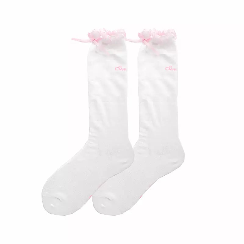 Sweet Bow Lolita Cotton White Pink Blue Calf & Over the Knee Socks