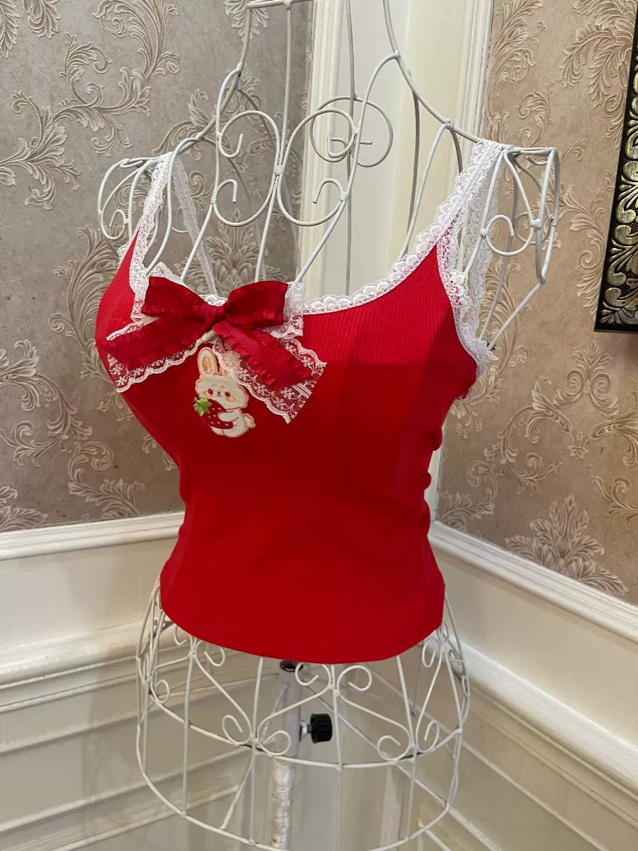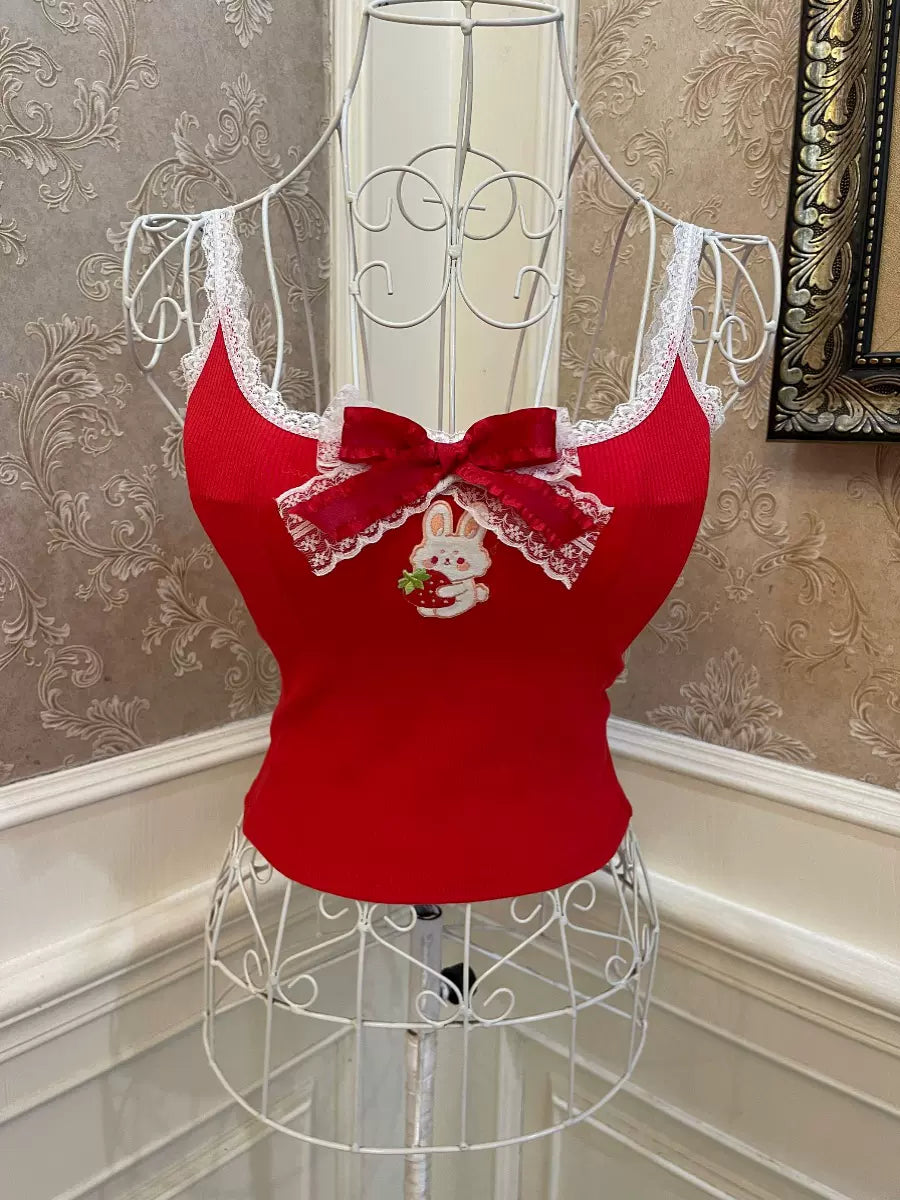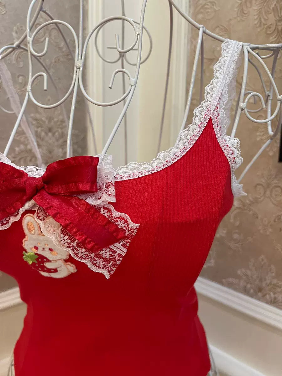 Sweetheart Princess Red Strawberry Rabbit Camisole Top