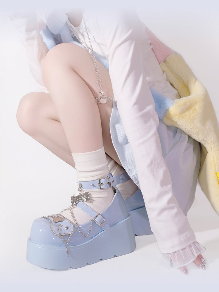 Transfer Student Y2K EGL Punk Goth Dog Bone Cross Platform Shoes