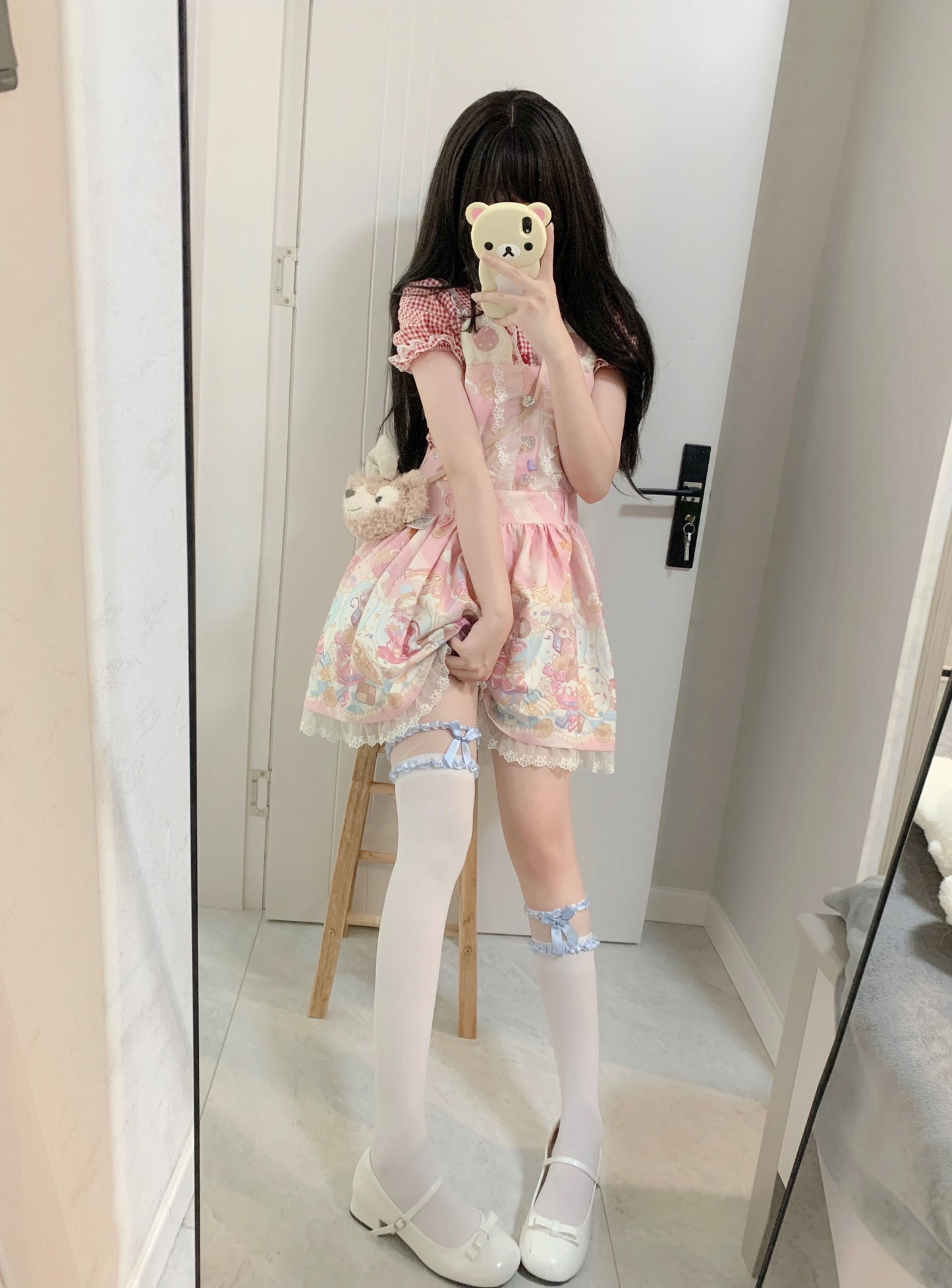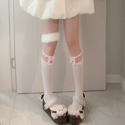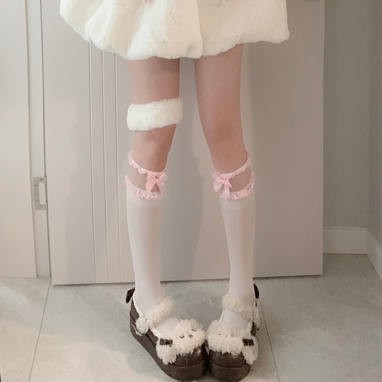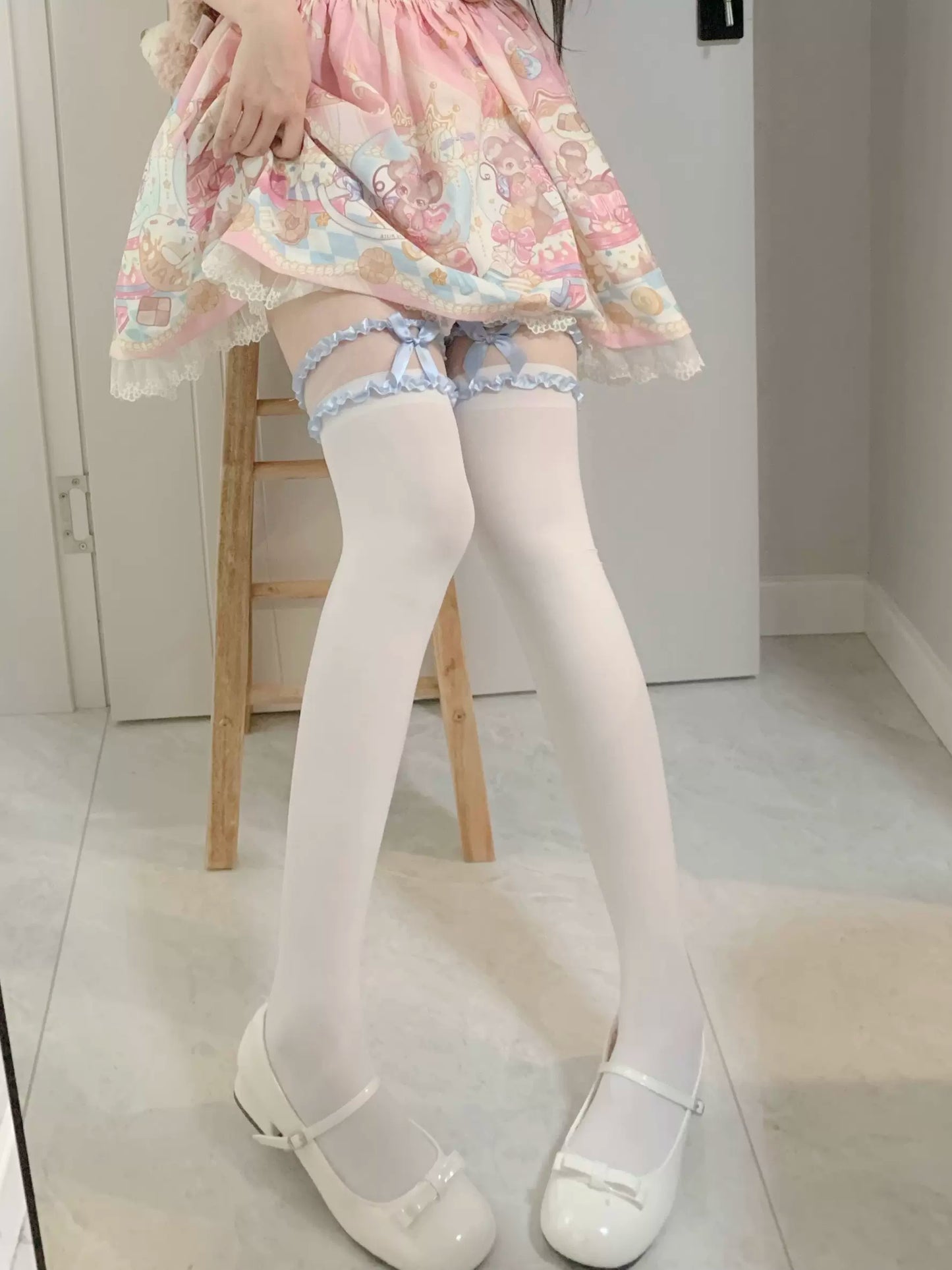 Twin Lace Pink Blue Black White Bow Lolita Mid Calf & Over the Knee Socks