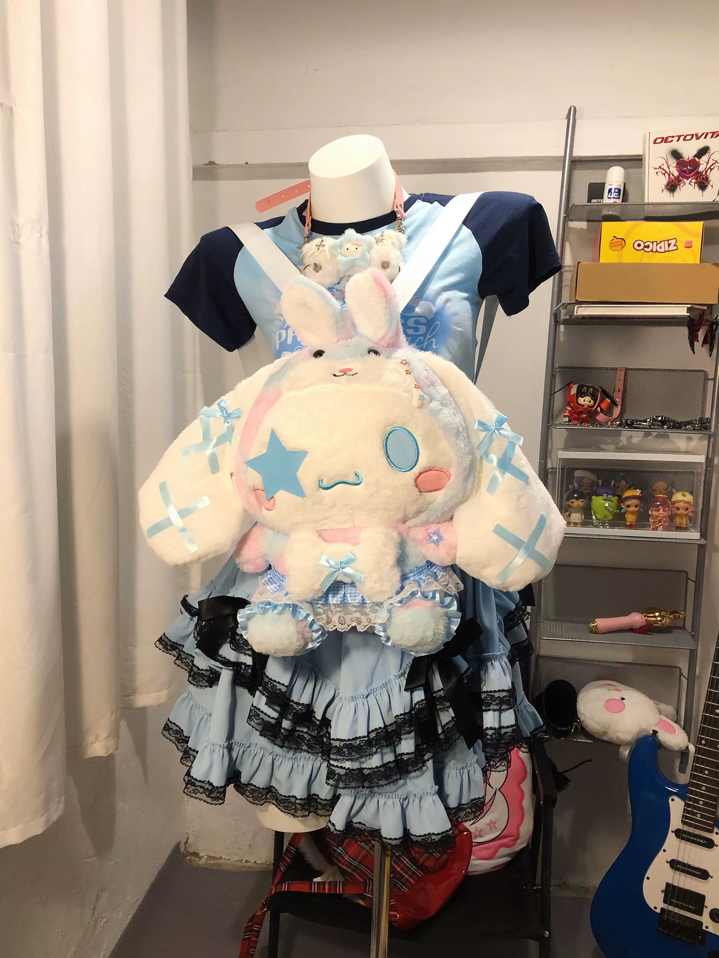 White Blue Cinnamon Dog Y2K Lace School Backpack Doll Bag