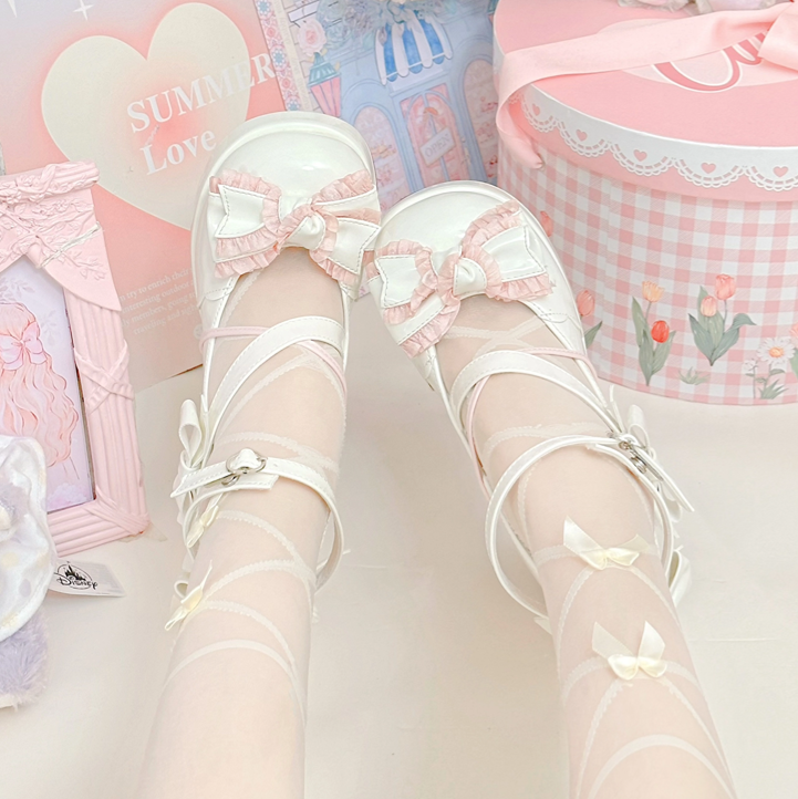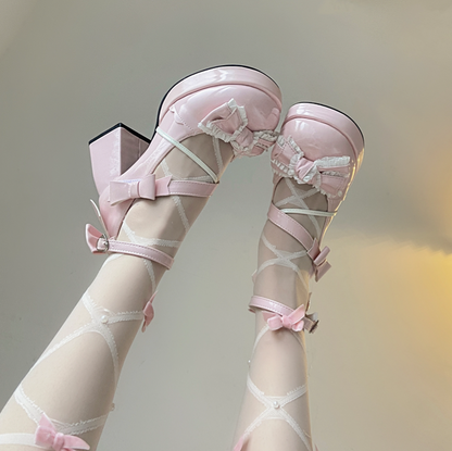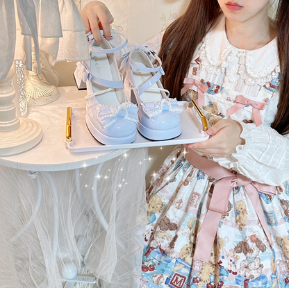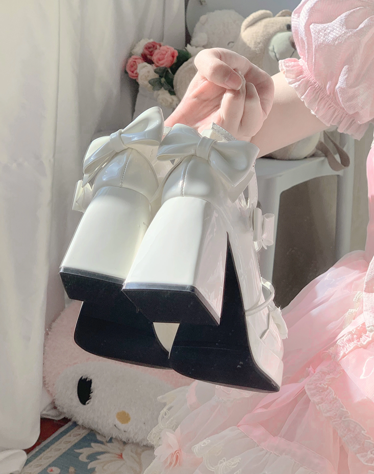 Walpurgis Night Lolita Girl Heart Knot Black White Pink Blue High Heels Shoes
