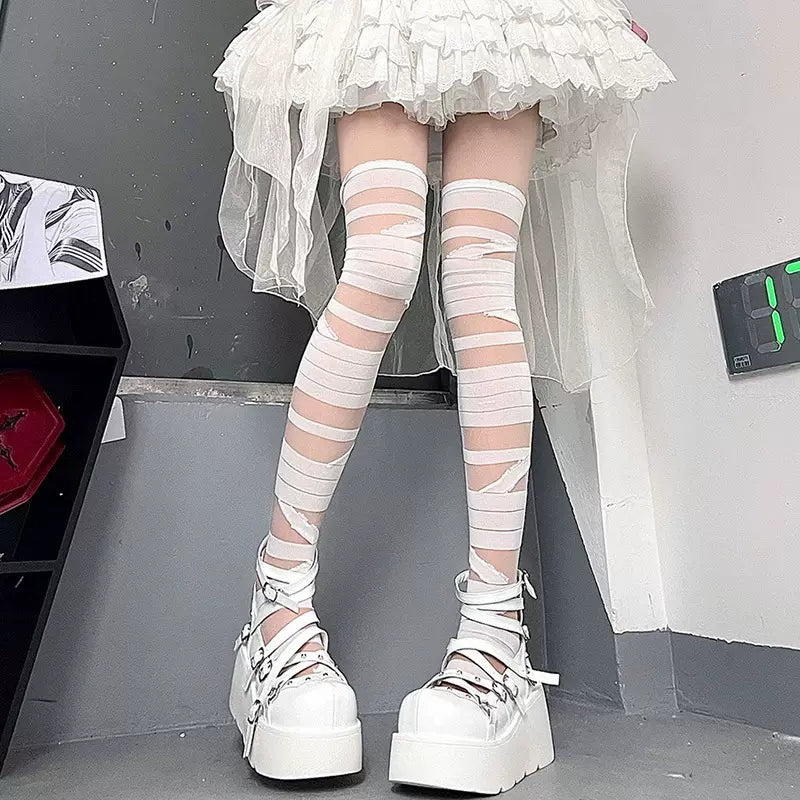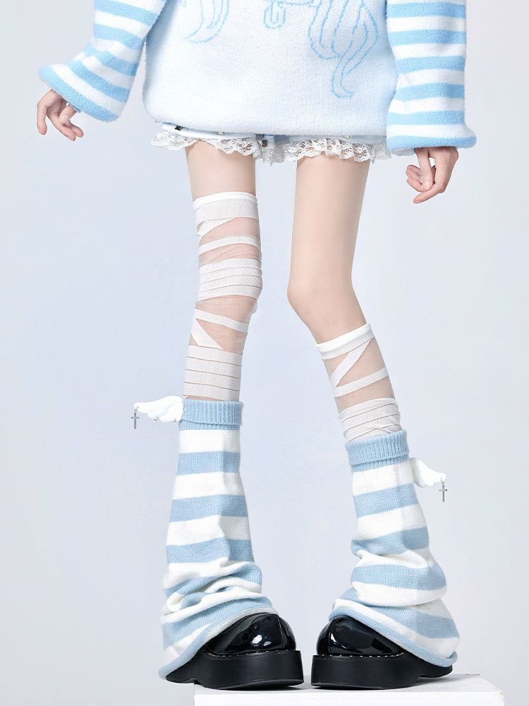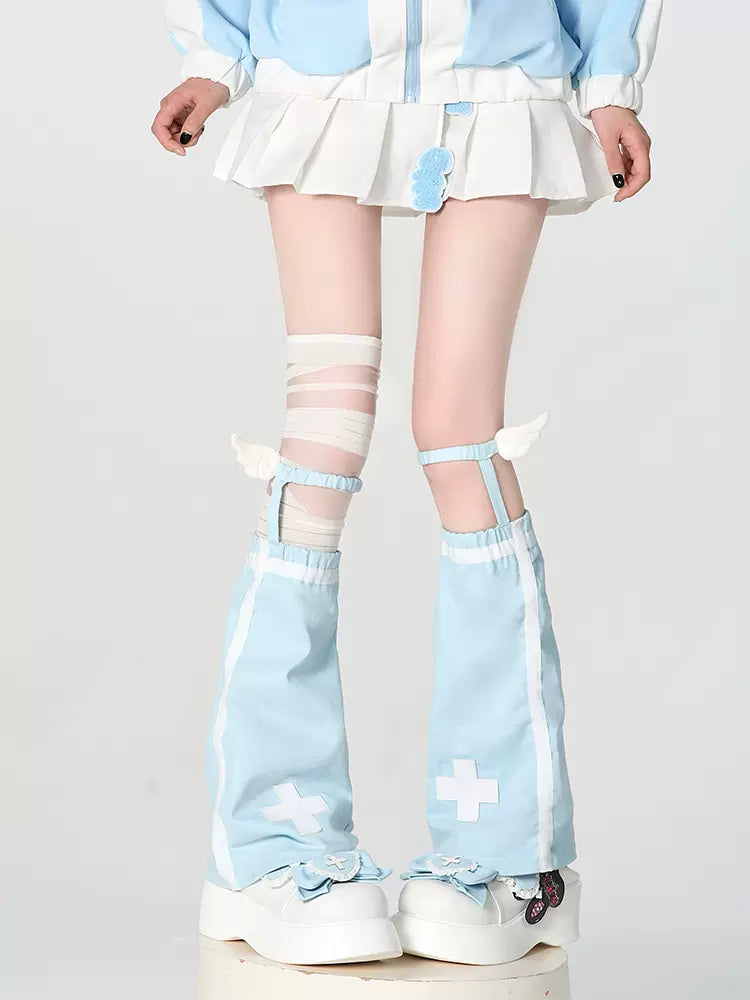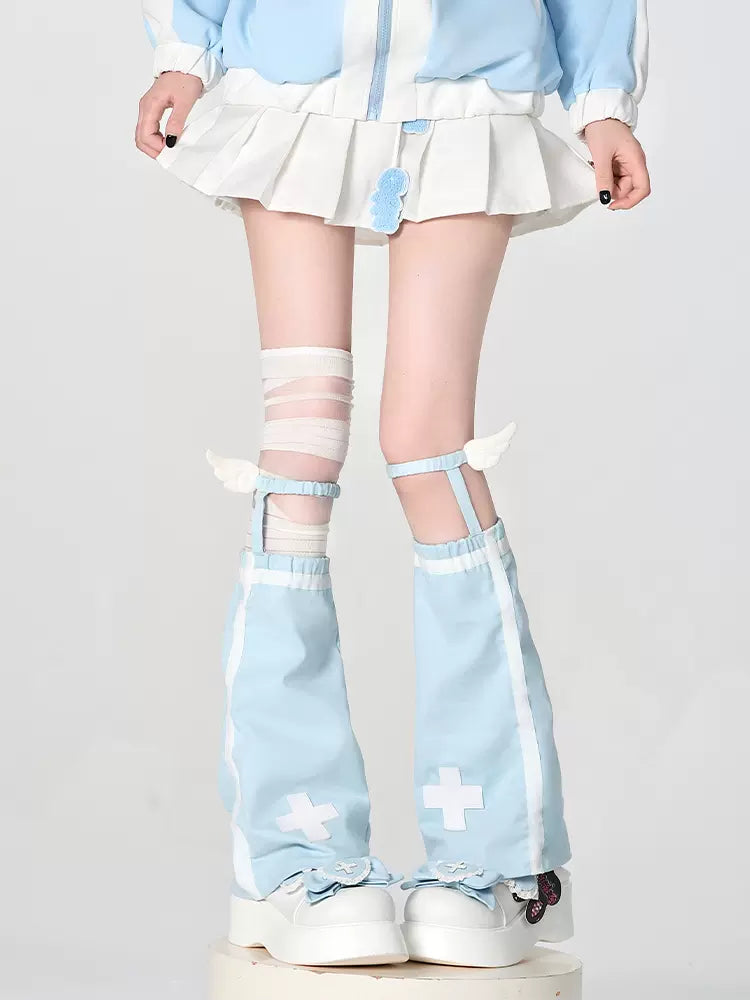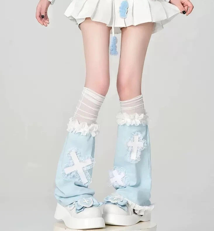 Y2K Cross Sky Blue & Pink Leg Warmers Mummy Stockings Set