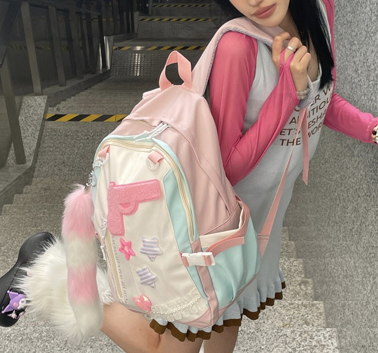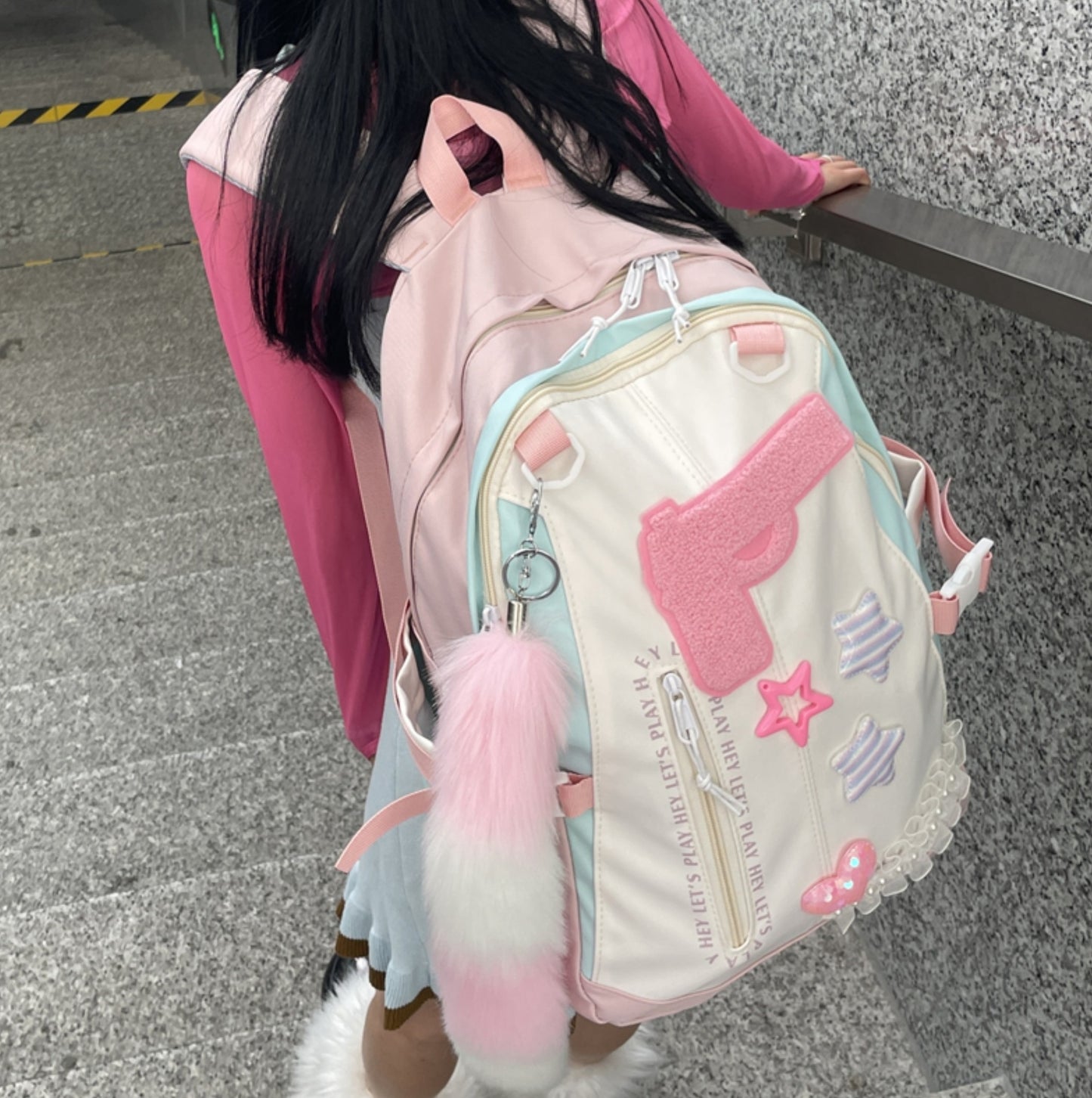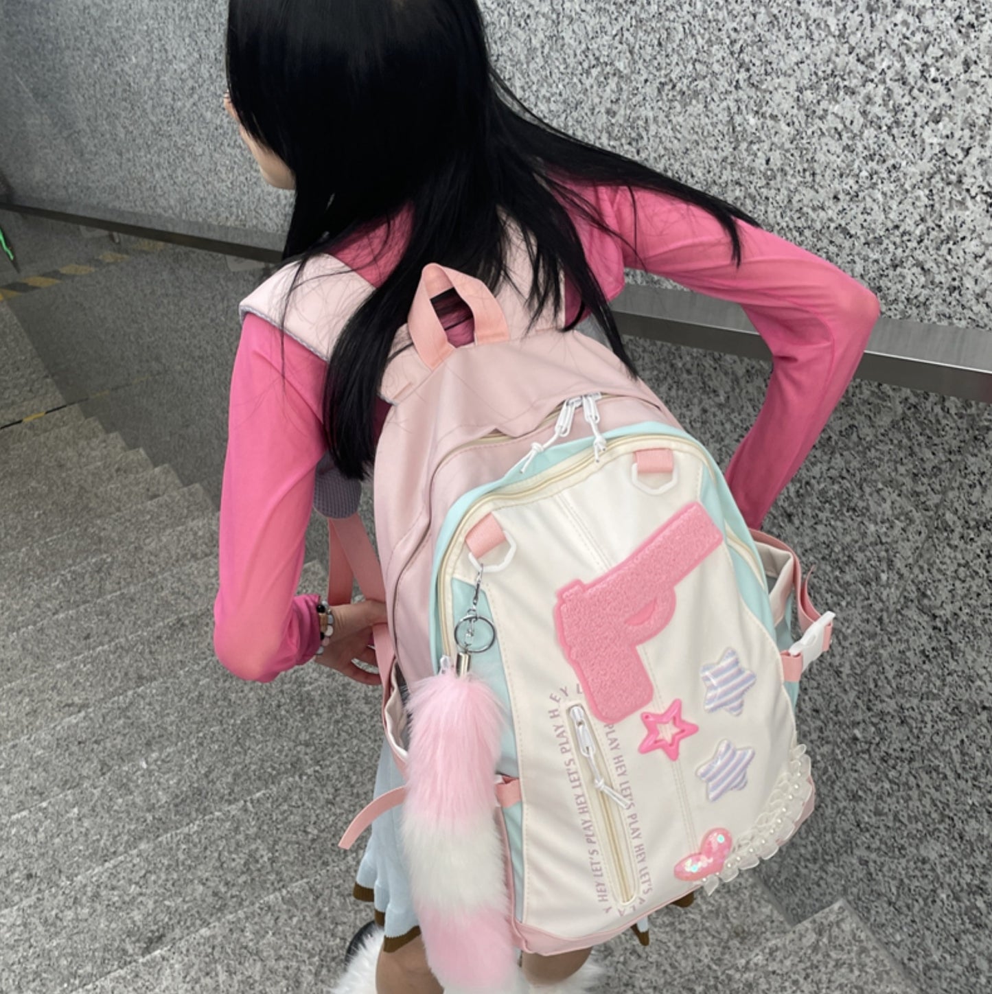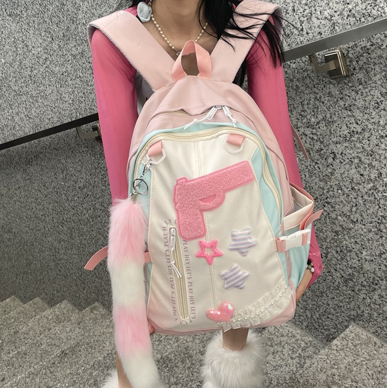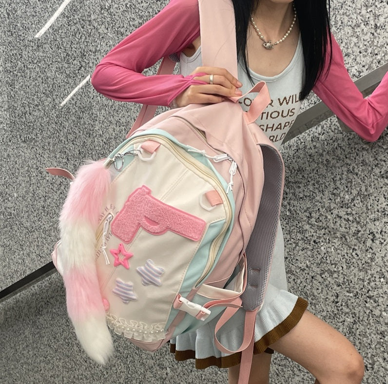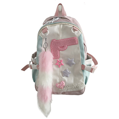 Y2K Pink Pistol Foxtail Large Capacity Student Backpack Bag