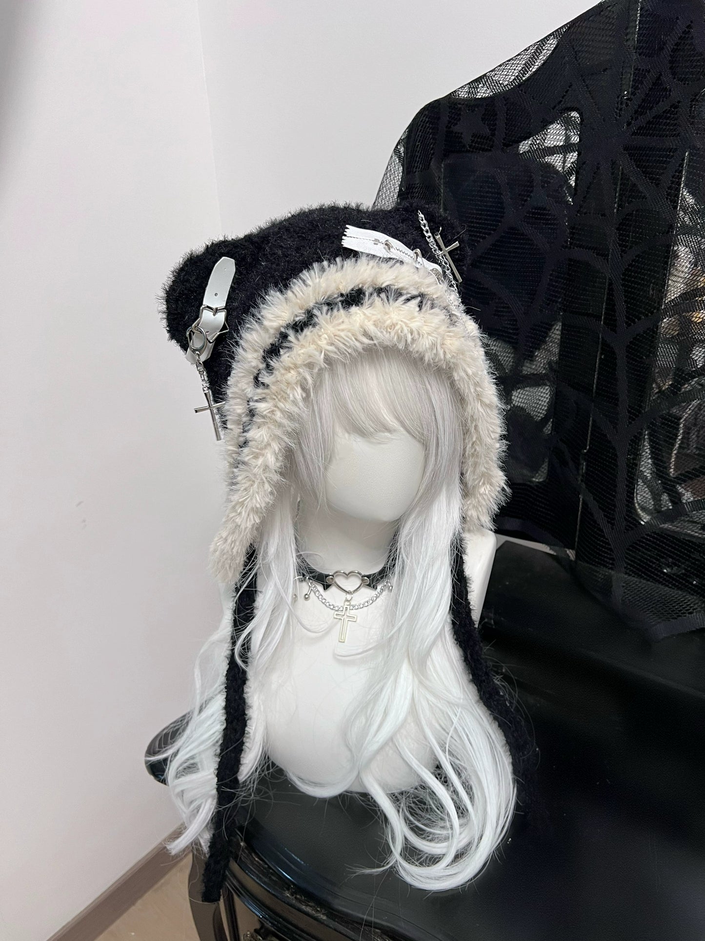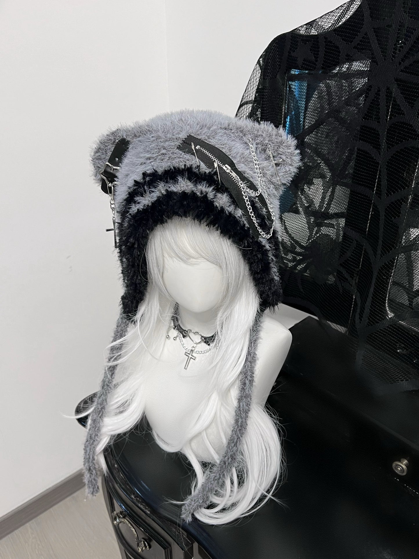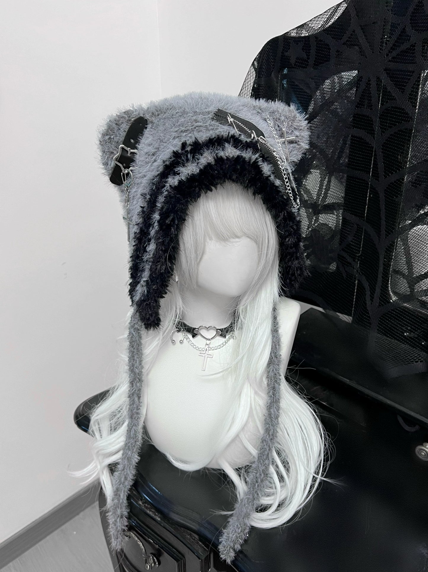 Y2K Polar Bear Ears Gray Black Wool Hats