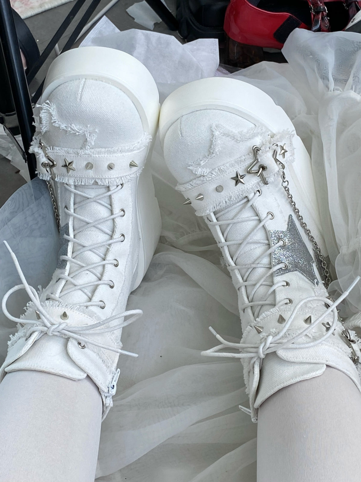 Pocket Cat Y2K Star Mark Chain EGL Canvas Strap Platform Shoes Boots